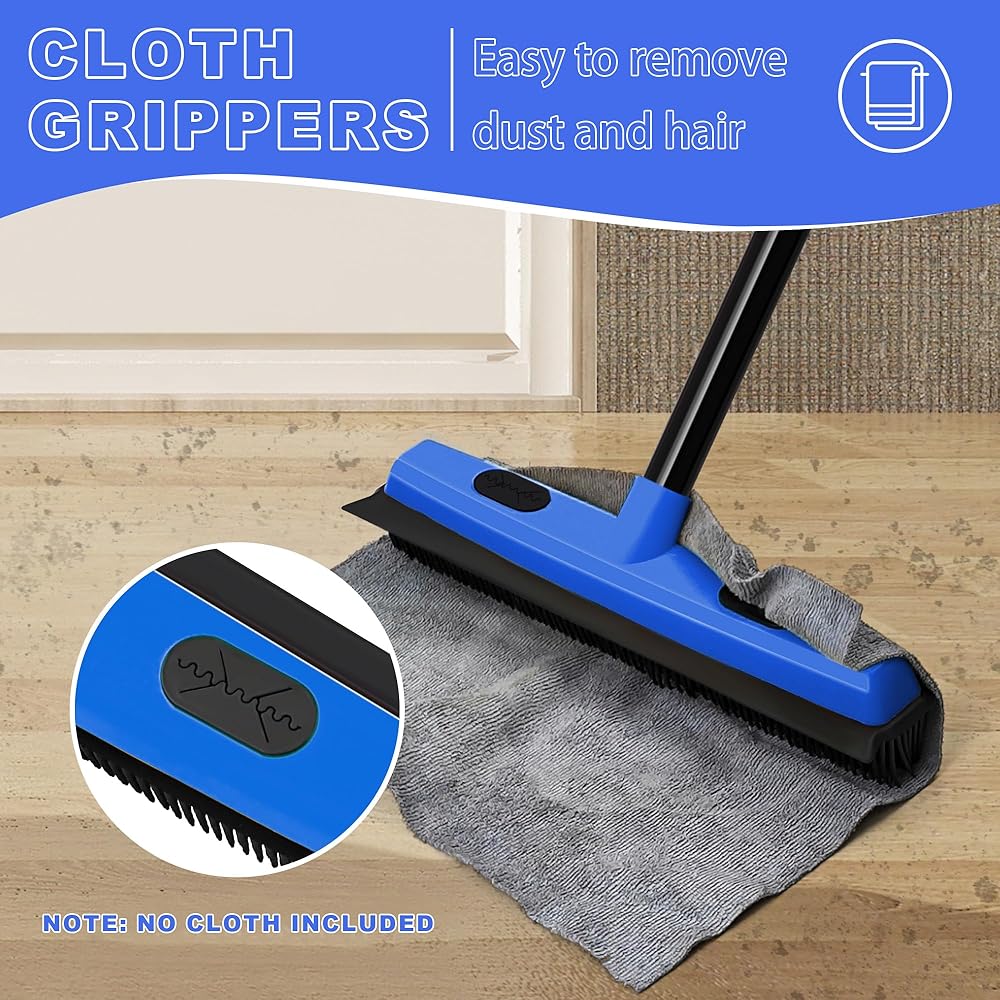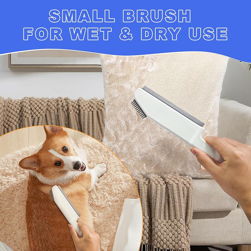 معدات تنظيف متعددة الاستخدامات: يوجد مشبكين على رأس مكنسة شعر الكلب. قم بقص قطعة القماش عليها واستخدمها كممسحة. بالإضافة إلى ذلك، تأتي مكنسة السيليكون مع فرشاة شعر صغيرة للحيوانات الأليفة، والتي لا يمكن استخدامها فقط لتمشيط الشعر، ولكن أيضًا لالتقاط القمامة الصغيرة.