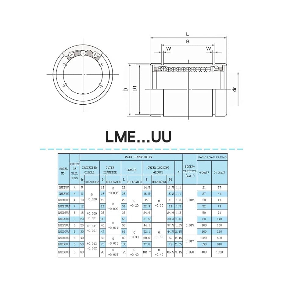 المحمل الخطي LME البطانات محامل الحركة الخطية للطابعة ثلاثية الأبعاد أجزاء جهاز التوجيه باستخدام الحاسب الآلي LME8UU LME12UU LME16UU LME20UU LME25UU محامل الكرات الخطية (2 قطعة Lme، LME50UU)