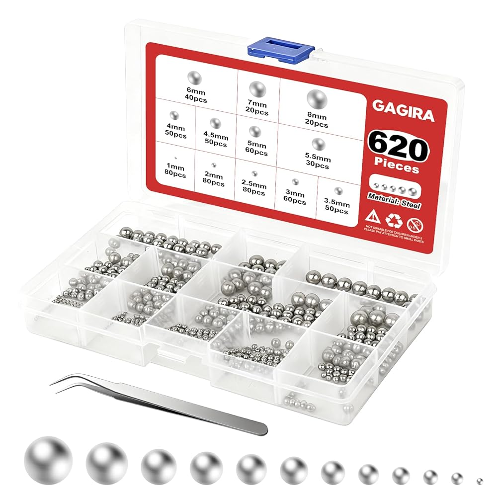 620Pcs 12 Size Bearing Ball, 304 Stainless Steel Precision Balls Assortment Kit 1mm, 2mm, 2.5mm, 3mm, 3.5mm, 4mm, 4.5mm, 5mm, 5.5mm, 6mm, 7mm, 8mm