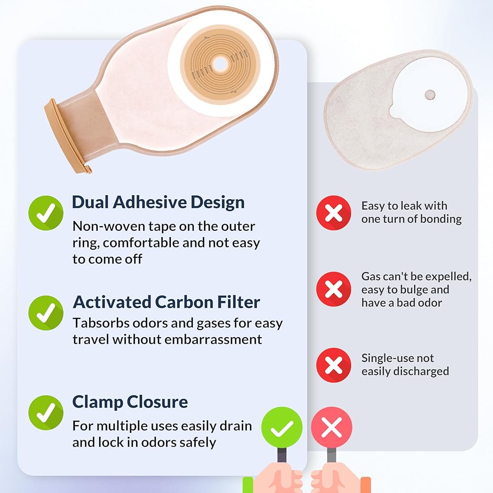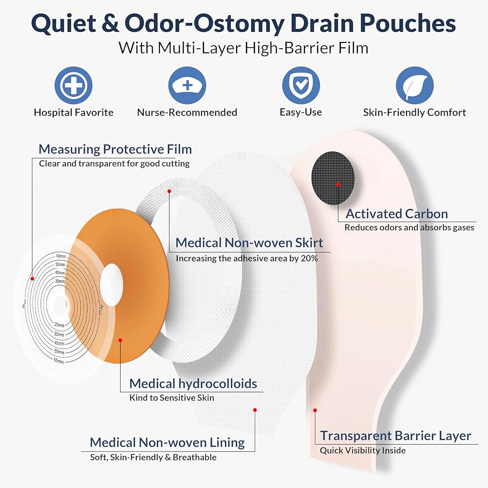• أوقف الروائح الكريهة في مساراتها: تتميز أكياس فغر القولون هذه بطبقة شفافة من EVOH وفلتر كربون منشط للتحكم الفعال في الرائحة. تعمل عن طريق حجب الروائح وتصفيتها، مما يساعدك على البقاء منتعشًا والحفاظ على بيئة خالية من الروائح لتحقيق أقصى قدر من الراحة.