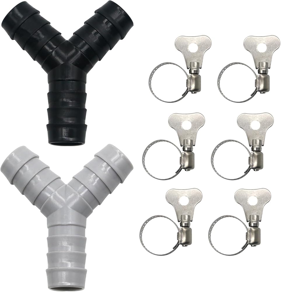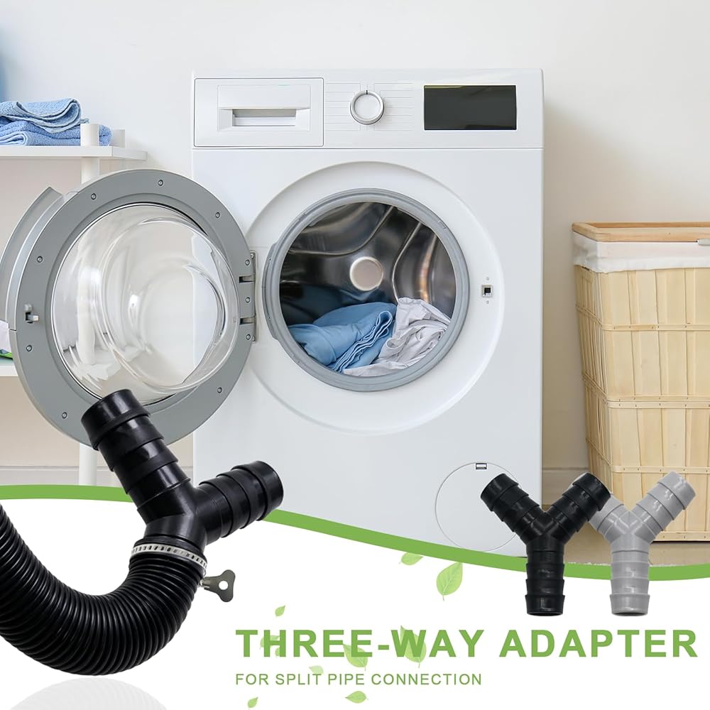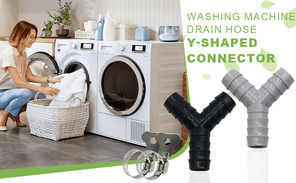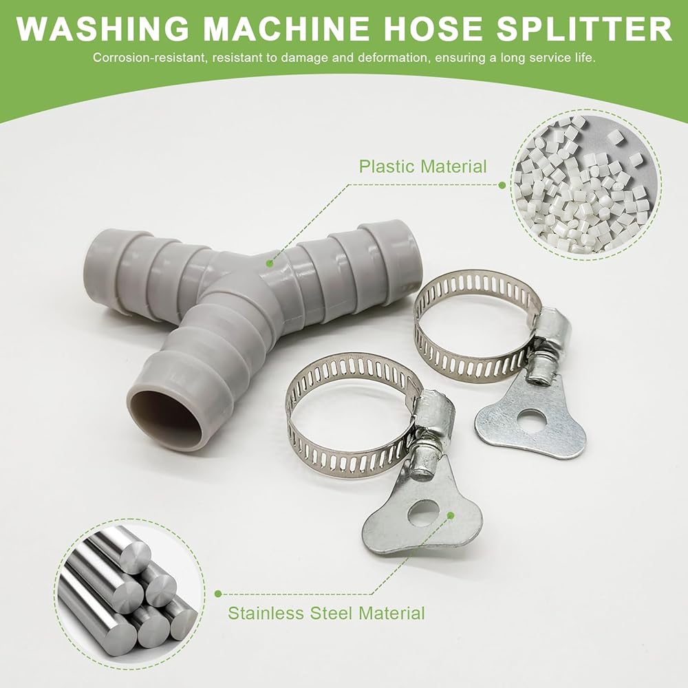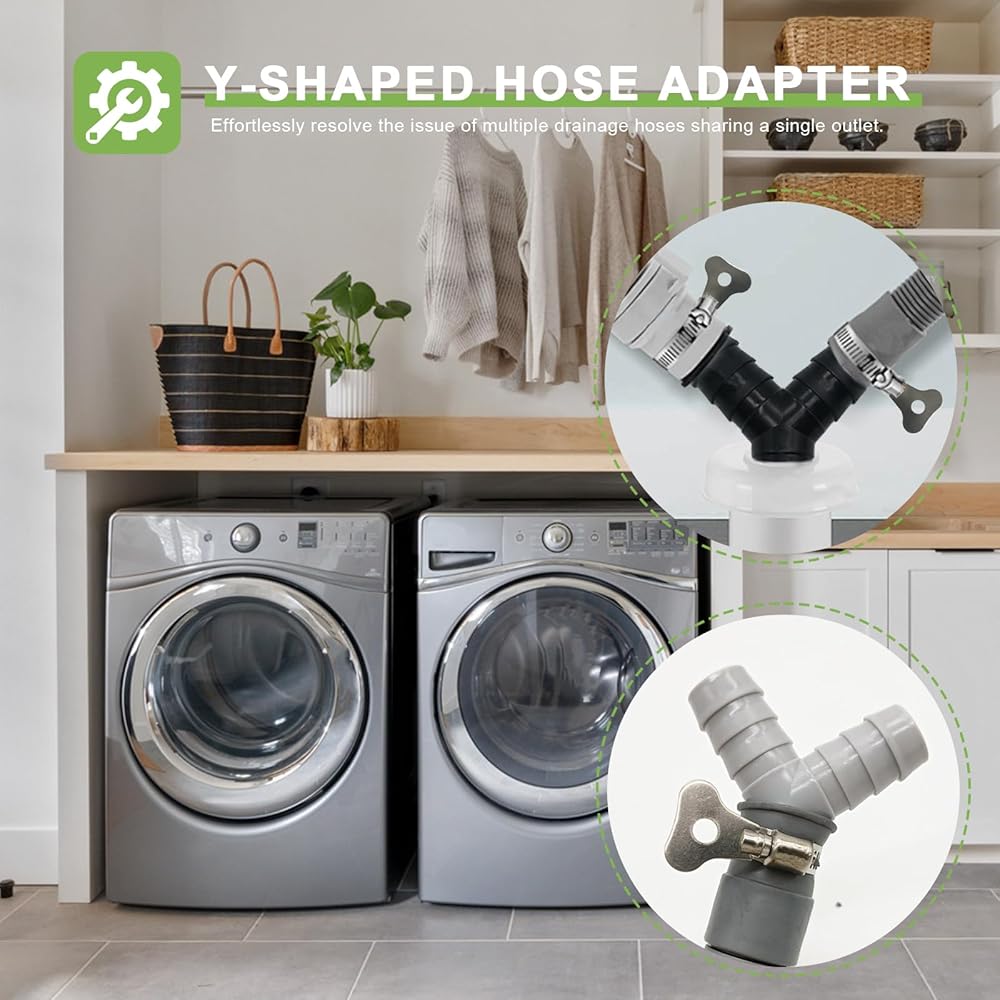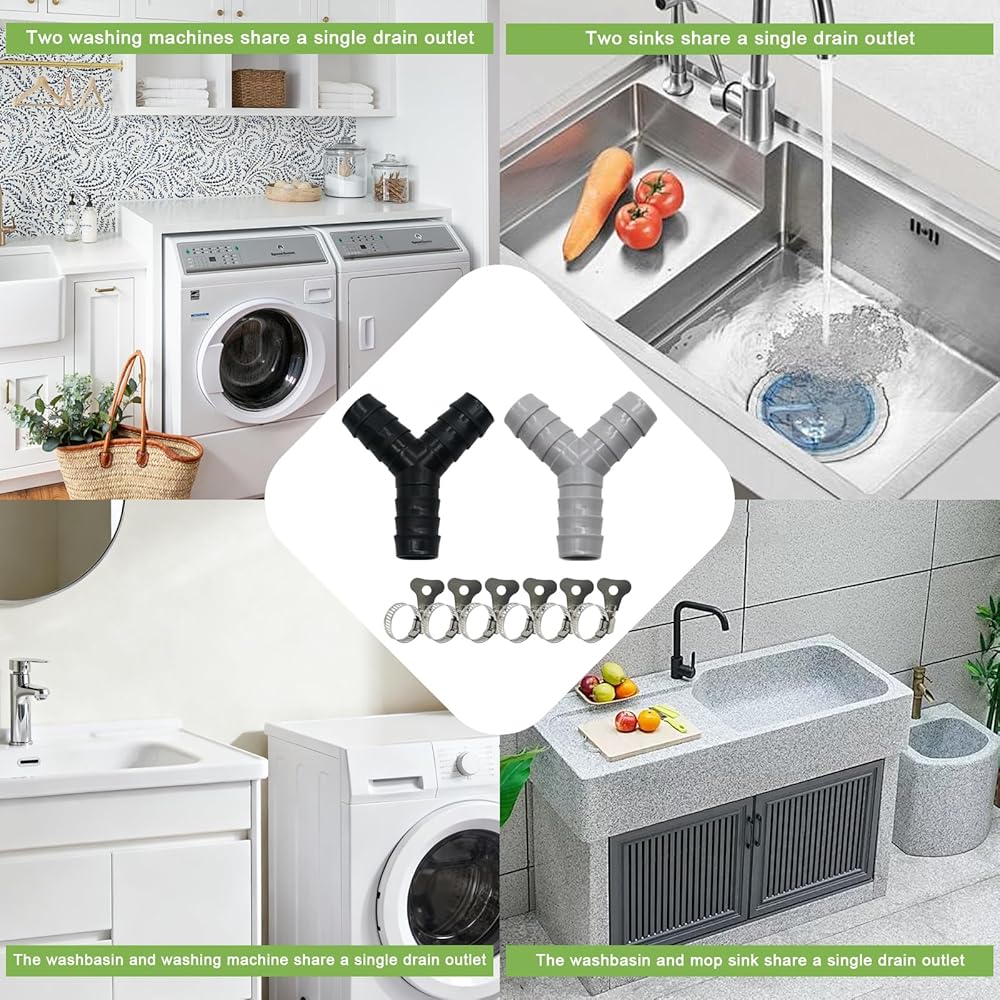 قطعتان من موزع خرطوم الغسالة العالمي على شكل حرف Y، محول بلاستيكي ثلاثي الاتجاهات لتوصيل الأنابيب المنفصلة، ​​موصل الصرف مع مشابك خرطوم، مناسب لحمامات المطبخ والشرفات