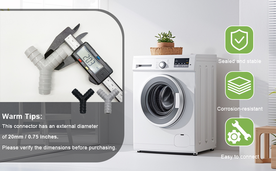 • الأحجام المناسبة: موصل خرطوم الصرف هذا مناسب لخراطيم تمديد غسالة الأطباق العالمية (القطر الداخلي 25 مم / 0.8 بوصة). لضمان التوافق، يرجى التأكد من معلومات المقاس قبل الشراء
