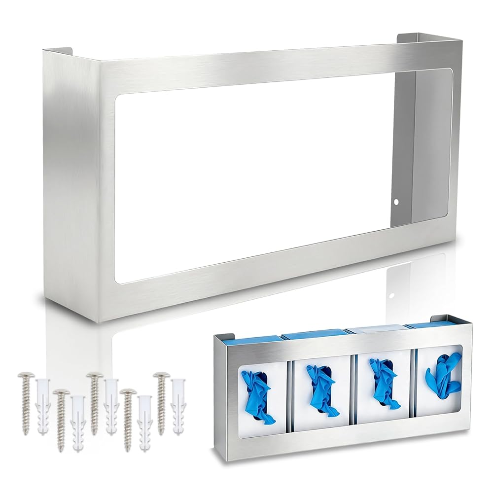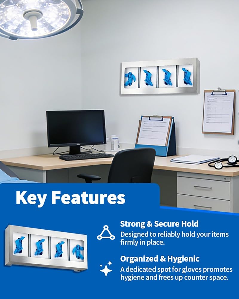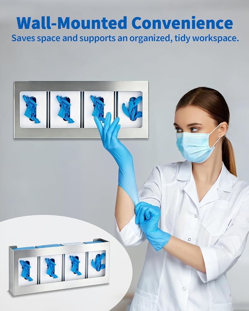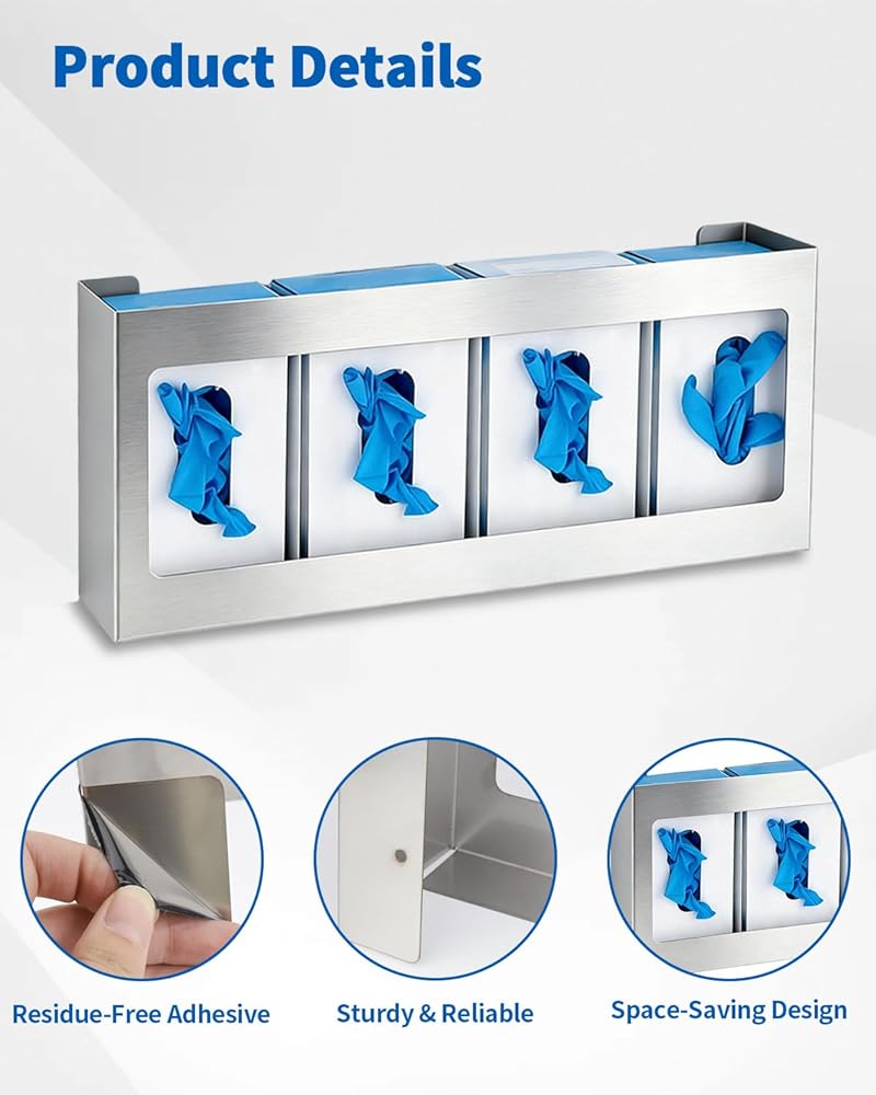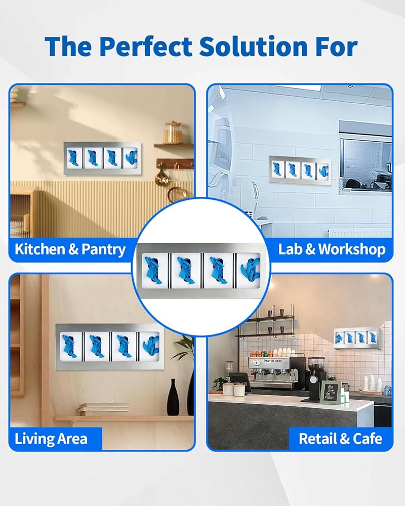 • Ample Supply with Dual Holders: Receive one stainless steel quadruple glove box holder, designed for your daily needs and replacements. This versatile glove holder makes sharing easy among friends or family, providing a practical glove dispenser wall mount solution for any setting