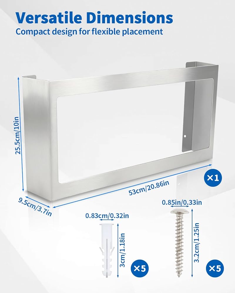 • Effortless Installation Design: Equipped with pre-drilled mounting holes and included screws, this glove dispenser wall mount allows for quick and easy installation. Easily mount it on walls, cabinets, or any flat surface for quick access to gloves and other essentials without hassle