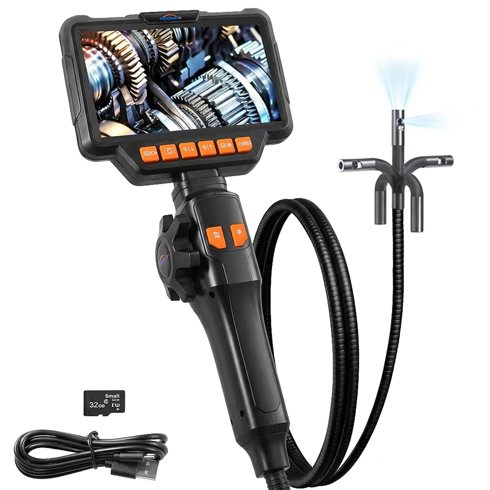 عدسة مزدوجة مفصلية بزاوية 180 درجة: يتميز المنظار المفصلي بعدسة مزدوجة قابلة للدوران 180 درجة (كاميرا أمامية + جانبية) مقاس 8 مم (0.31 بوصة)، مصممة خصيصًا لفحص محرك البنزين. من خلال دوران المقبض البسيط، يمكنك بسهولة ضبط زاوية الرؤية حول الزوايا، والتبديل بزر واحد بين المنظر الأمامي والجانبي، مما يزيل نقاط الفحص الميتة حتى في المساحات الصغيرة التي يصعب الوصول إليها.