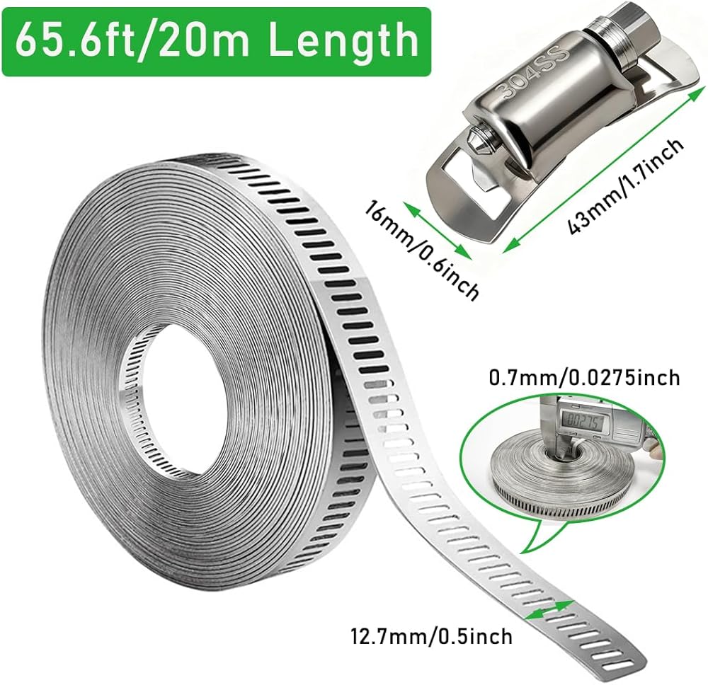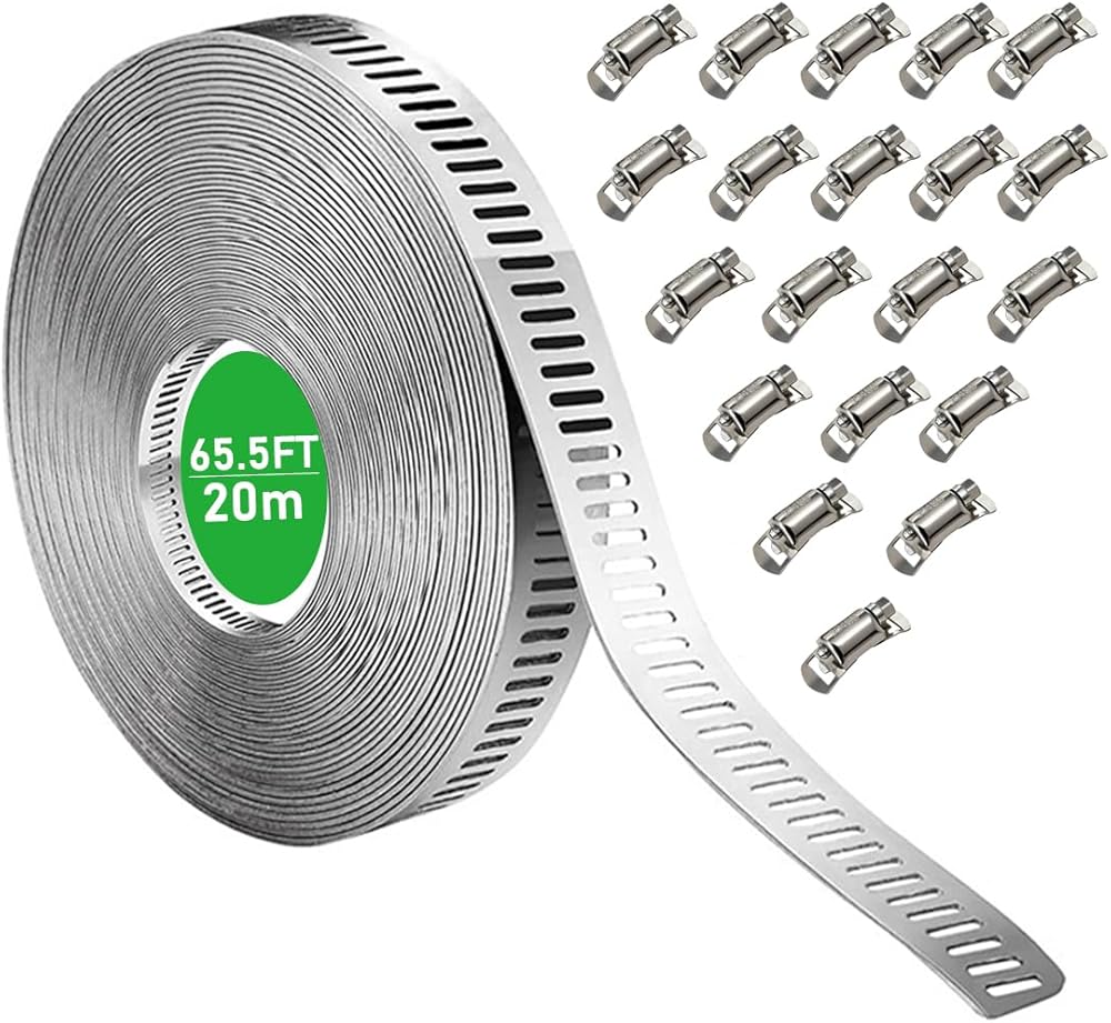 مجموعة متنوعة من مشابك خرطوم الفولاذ المقاوم للصدأ بطول 65.5FT/20m مع 20 قطعة مثبتات، حزام تثبيت معدني طويل قابل للتعديل DIY للأنابيب والمبرد الداخلي والسباكة والأنبوب والمبرد وخط الوقود
