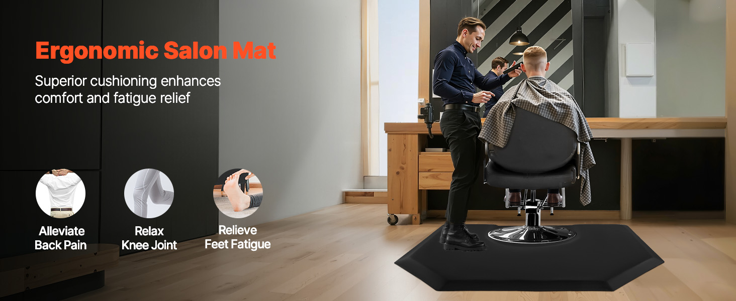 عملية وأنيقة: تساعد سجادة صالون VEVOR لمصفف الشعر على تخفيف آلام الظهر وتعب الكاحل وتوتر الركبتين، مع تعزيز وضع الوقوف الصحي. بالإضافة إلى ذلك، يضيف اللون الأسود غير اللامع لمسة عصرية لرفع المستوى الجمالي العام للصالون