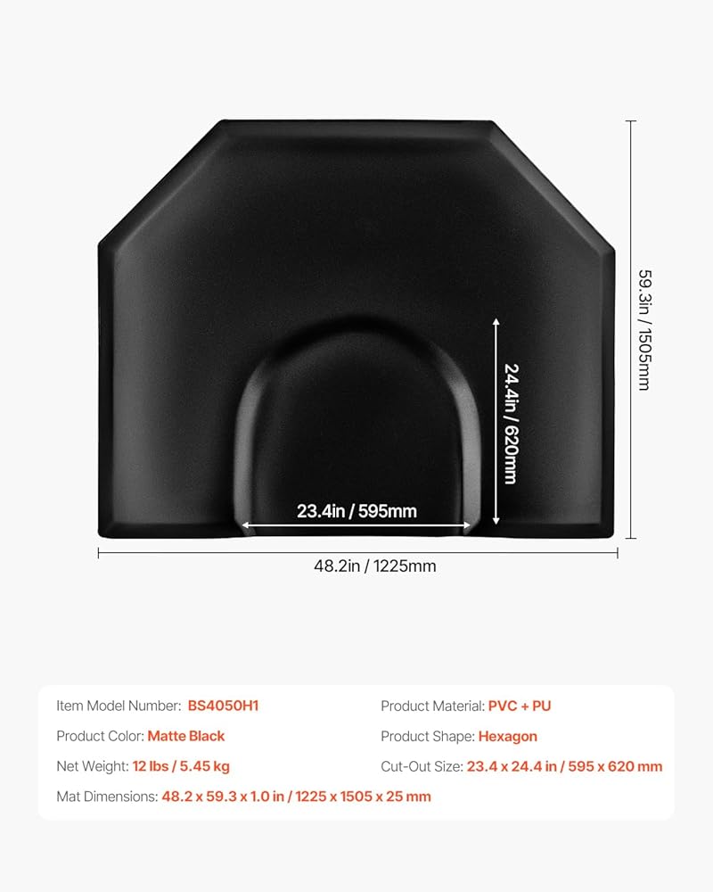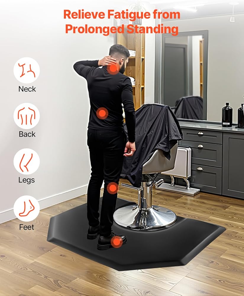 VEVOR Salon Mat for Hair Stylist, 4 x 5 FT Hexagon Salon Chair Mat Anti Fatigue, 1-inch Thickened Barber Shop Floor Mat with Round Cut Out, Easy-to-Clean PVC Surface & Anti-Trip Beveled Edges