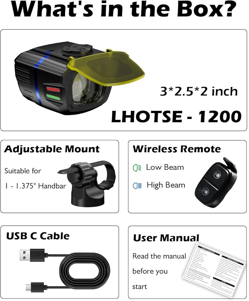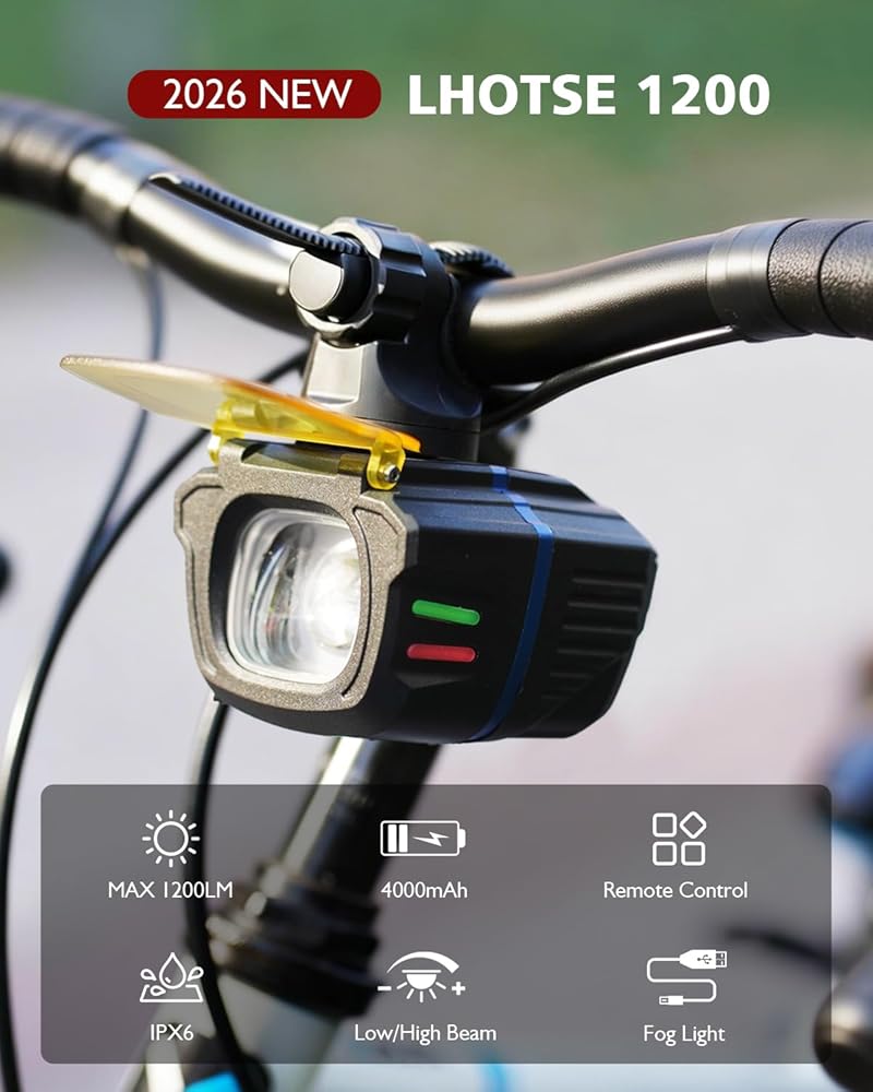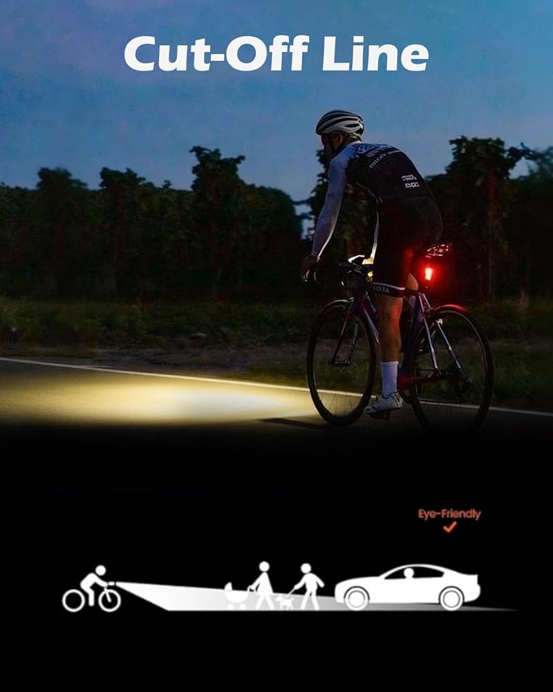 • 【1200LM فائق السطوع وسعة هائلة 4000 مللي أمبير في الساعة】 يضيء هذا المصباح الأمامي بقوة 1200 لومن، ويضيء أحلك المسارات بسهولة. مزود ببطارية ممتازة قابلة لإعادة الشحن بسعة 4000 مللي أمبير في الساعة، مما يوفر وقت تشغيل مذهل يصل إلى 10 ساعات بشحنة واحدة. يتميز بتقنية الشحن السريع USB-C، فهو يقلل من وقت التوقف عن العمل ويضمن لك قضاء المزيد من الوقت في الركوب ووقت أقل في الانتظار. مثالية للرحلات الطويلة ومغامرات ركوب الدراجات طوال الليل.