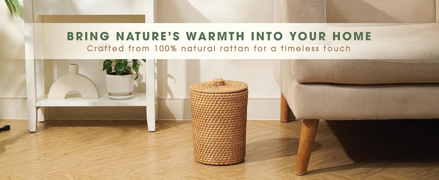- سهولة عملية: تأتي سلة الروطان ذات الغطاء مع بطانة قابلة للإزالة، مما يحافظ على التخلص من القمامة نظيفًا وسهلاً كل يوم.