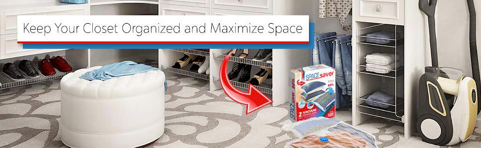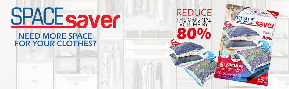 قم بزيادة مساحة التخزين الخاصة بك دون الحاجة إلى تنظيف خزانتك! تُعد حقائب Spacesaver الخاصة بنا حلاً مثاليًا لإضافة المزيد من مساحة التخزين إلى خزانات الملابس والخزانات والجراجات والأقبية والغرف العلوية وحقائب السفر.