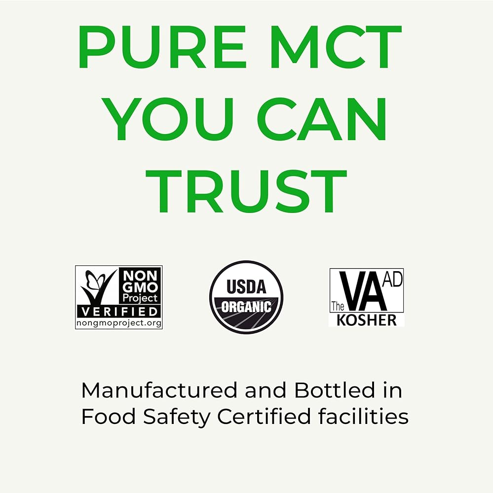 • C8 وC10 النقي من جوز الهند العضوي: مصنوع من زيت MCT العضوي المشتق من جوز الهند مع C8 وC10، بدون زيت النخيل أو الحشو أو الإضافات غير الضرورية. معبأة في الولايات المتحدة الأمريكية وفقًا لمعايير الجودة والسلامة الغذائية الصارمة.