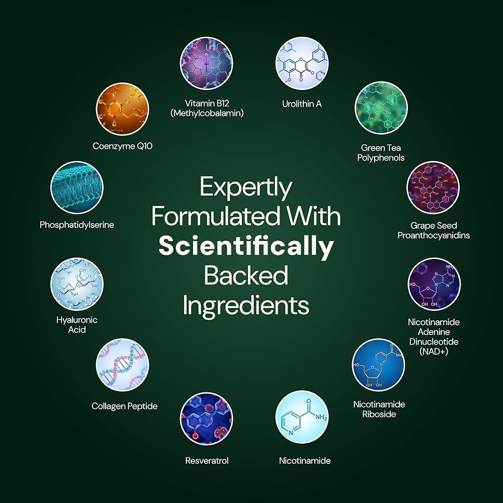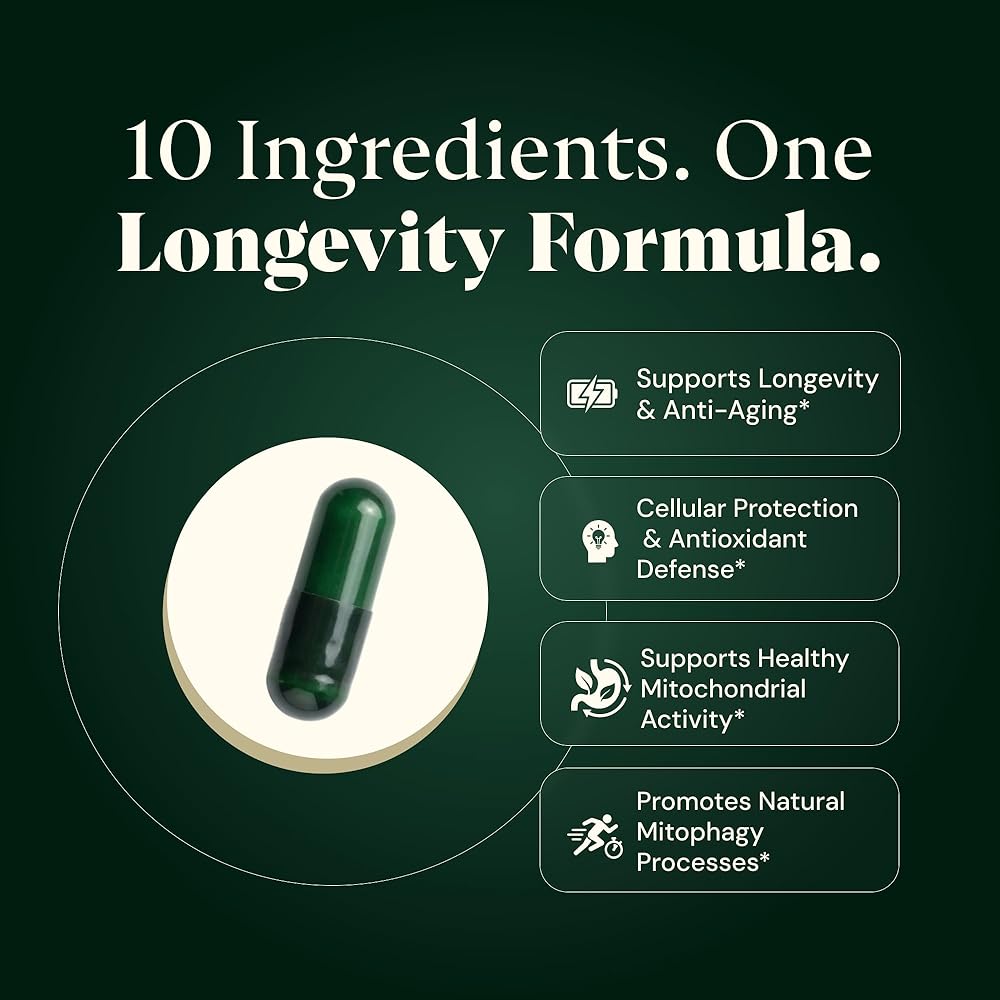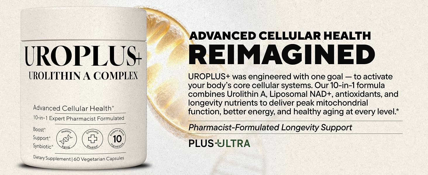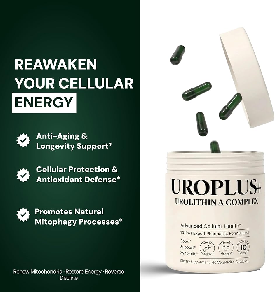 𝐃𝐔𝐀𝐋-𝐏𝐀𝐓𝐇𝐖𝐀𝐘 𝐋𝐎𝐍𝐆𝐄𝐕𝐈𝐓𝐘 𝐒𝐔𝐏𝐏𝐎𝐑𝐓 — يجمع سلائف Urolithin A وNAD+ تستهدف الحيوية الخلوية من زاويتين: تعزيز الميتوفاجي (التجديد الخلوي) وطاقة الميتوكوندريا لوظيفة الشباب والقدرة على التحمل.*