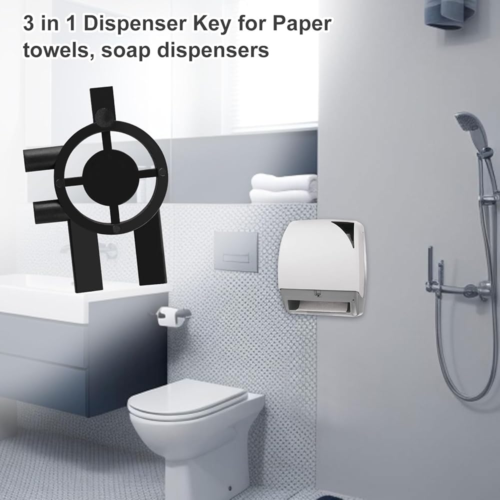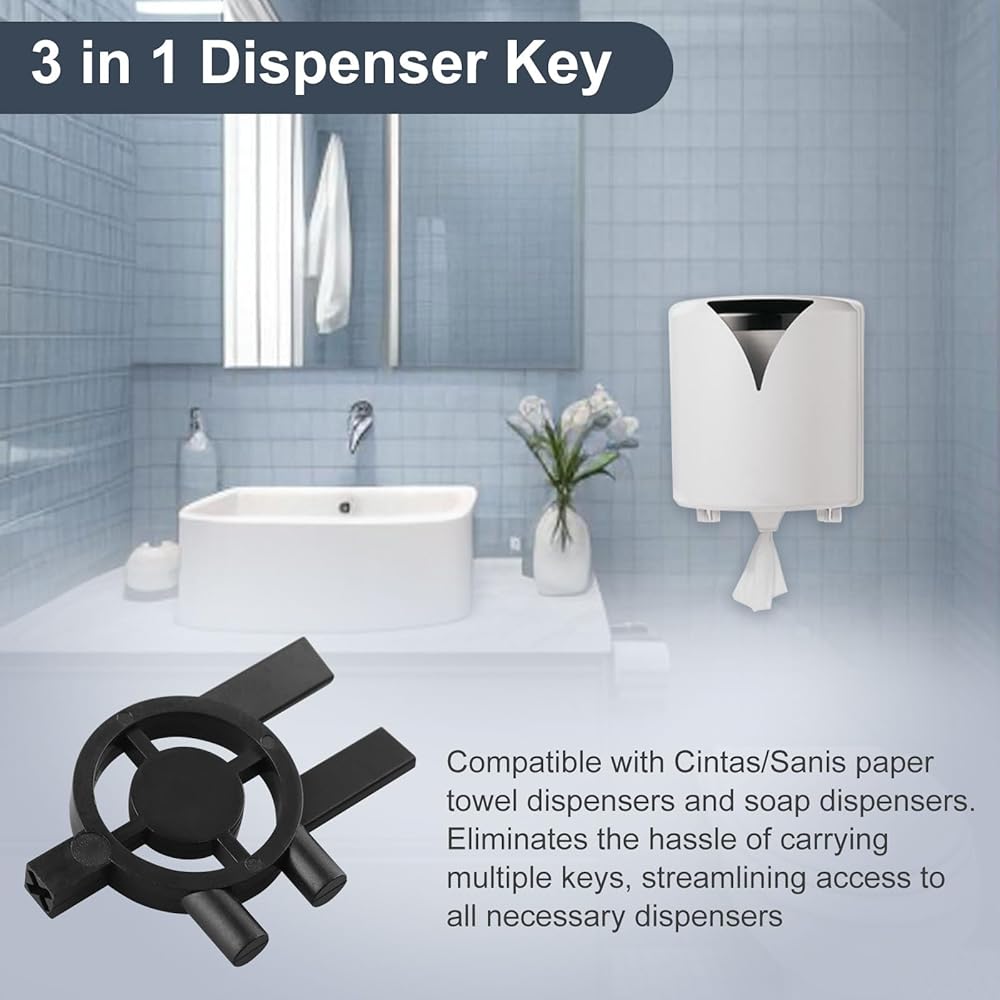 يجمع بين 3 وظائف أساسية في واحد: متوافق مع موزعات المناشف الورقية سينتاس/سانيس (نوعان) وموزعات الصابون. يزيل متاعب حمل مفاتيح متعددة، ويسهل الوصول إلى جميع الموزعات الضرورية.