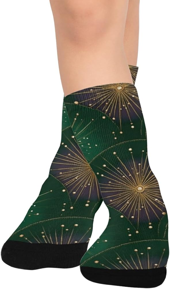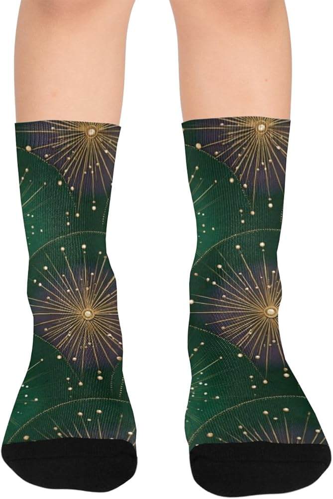 جوارب المشي لمسافات طويلة باللون الأخضر الاحتفالي من Retro Art - جوارب شتوية حرارية سميكة دافئة للأولاد والبنات للمدرسة، والارتداء اليومي والأنشطة الخارجية