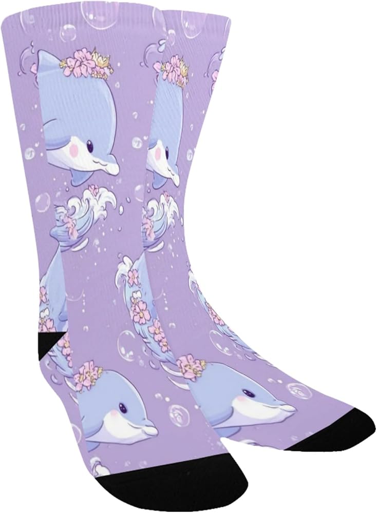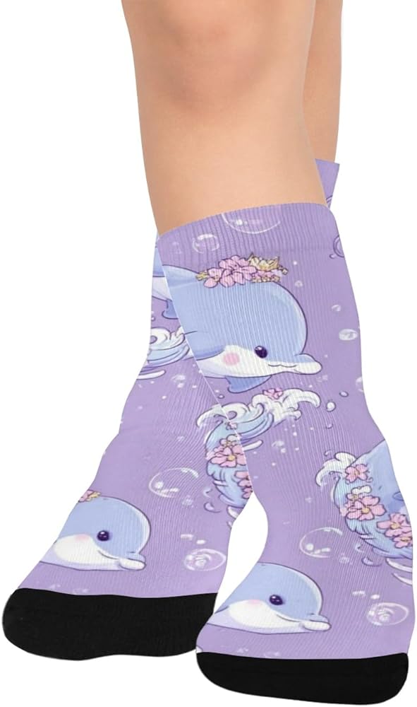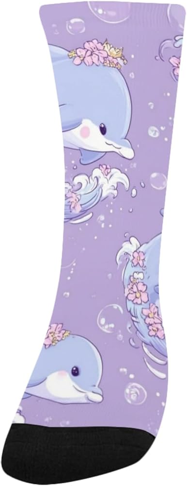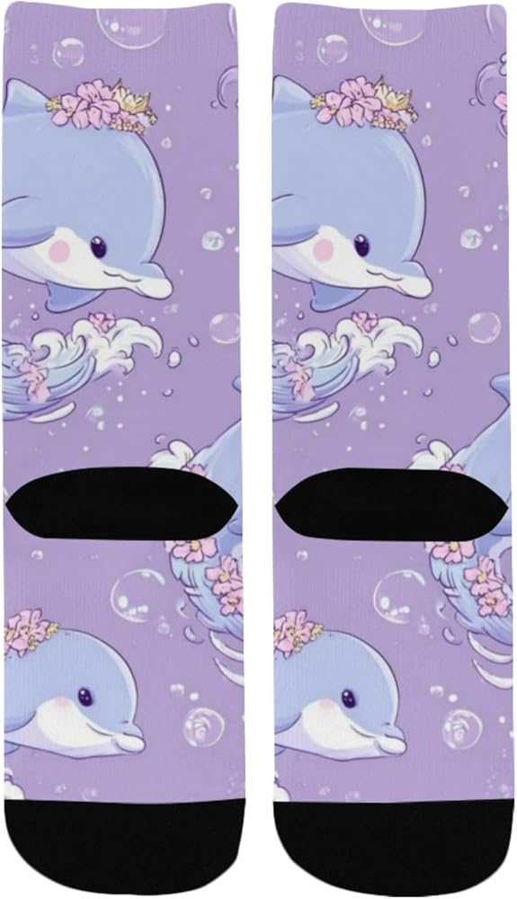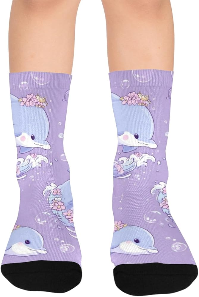 جوارب صيفية للمشي لمسافات طويلة بطبعة دولفين باستيل - جوارب شتوية حرارية سميكة دافئة للأولاد والبنات للمدرسة، والارتداء اليومي والأنشطة الخارجية