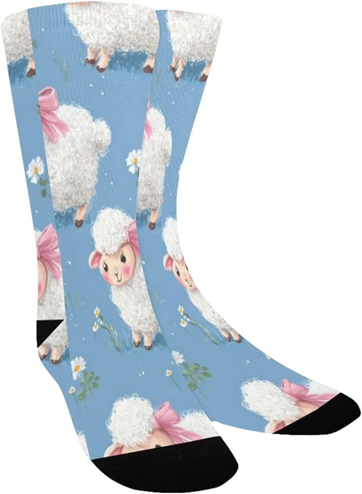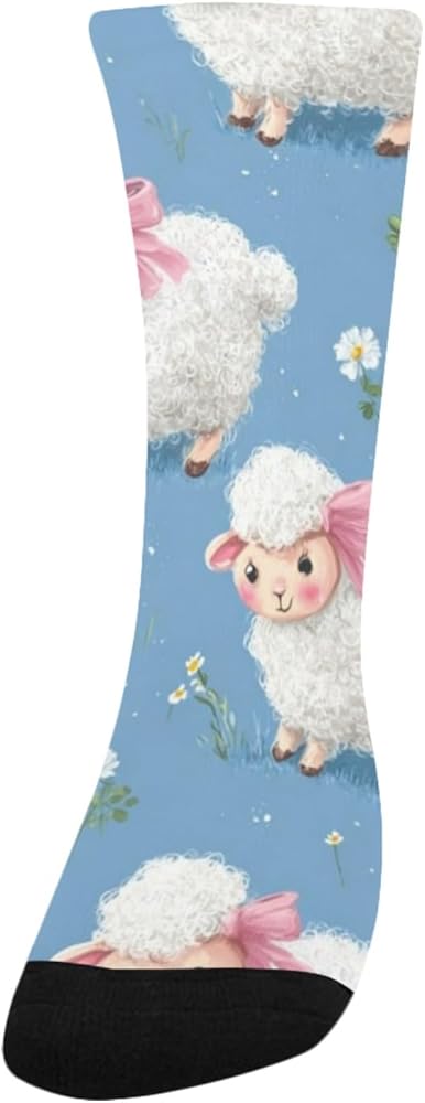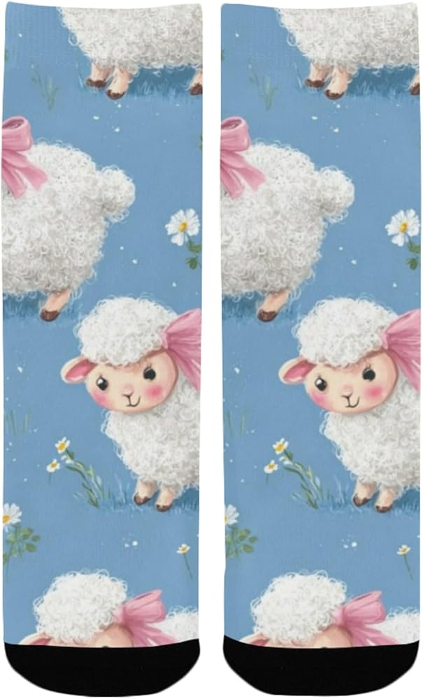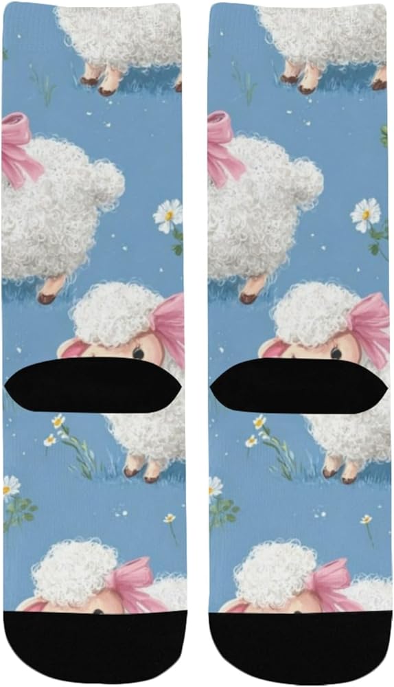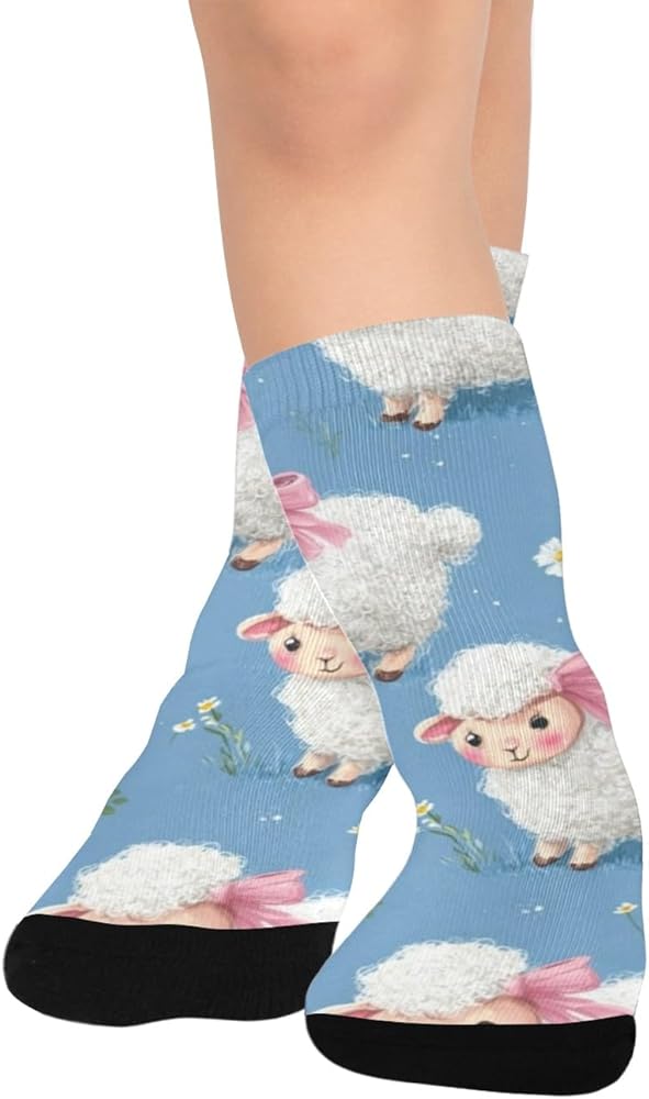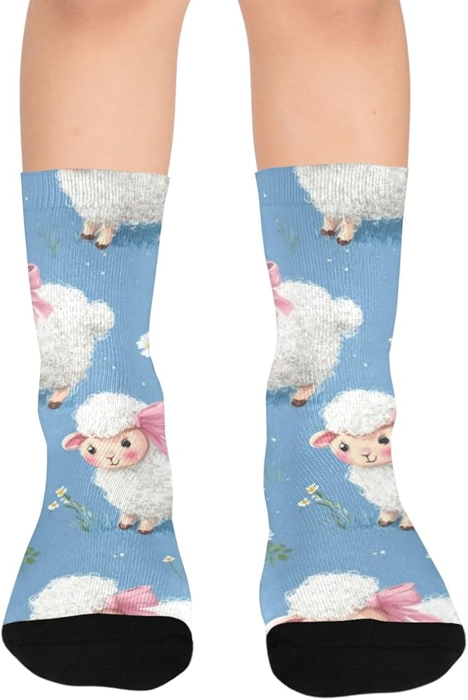 جوارب زرقاء للمشي لمسافات طويلة بطبعة خروف باستيل - جوارب شتوية حرارية سميكة دافئة للأولاد والبنات للمدرسة، والارتداء اليومي والأنشطة الخارجية
