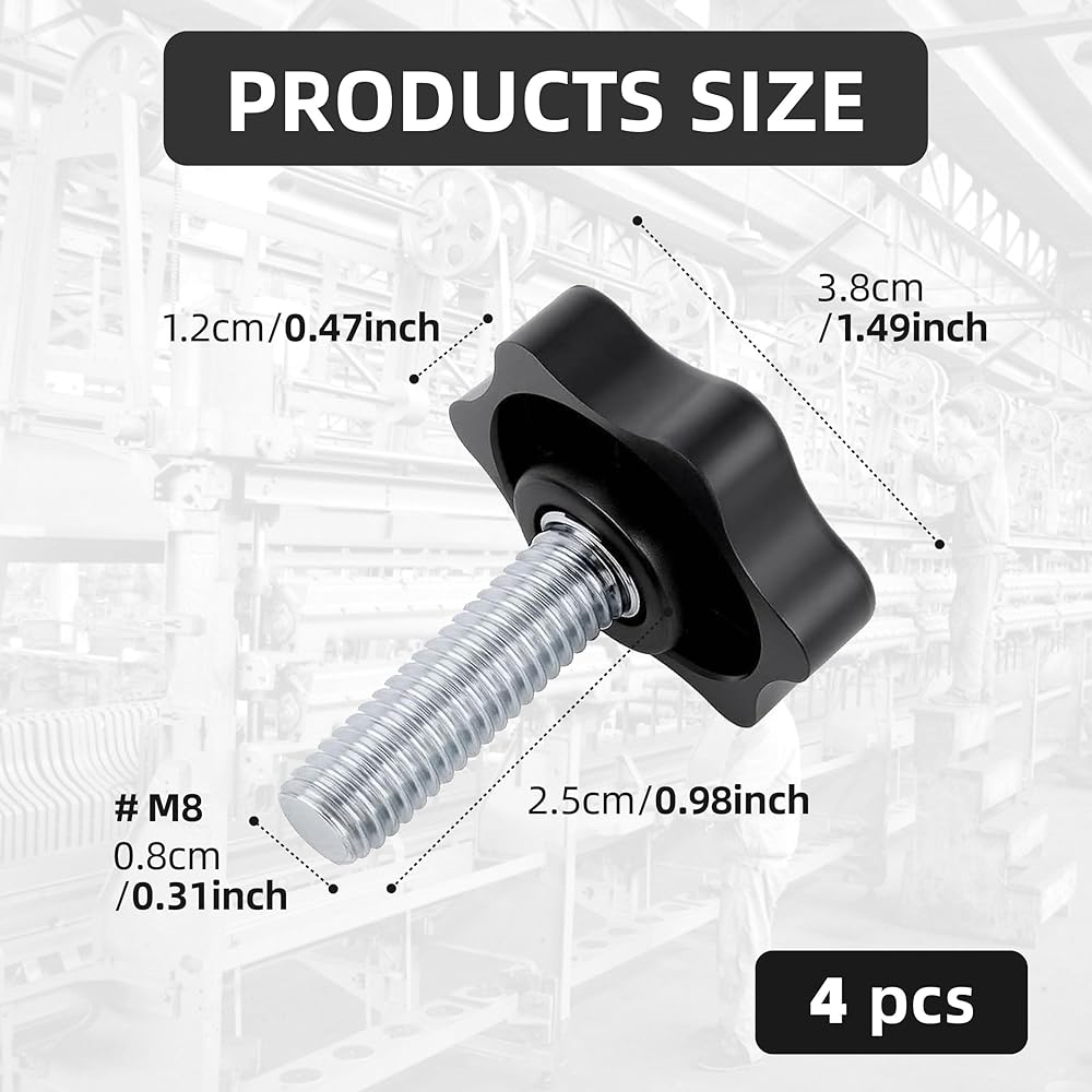 • 1. 【Package Included】4 Pcs M8 x 25mm threaded star knobs, ideal as replacement screws for Christmas tree stand, umbrella base, and patio umbrella hand tightening needs.