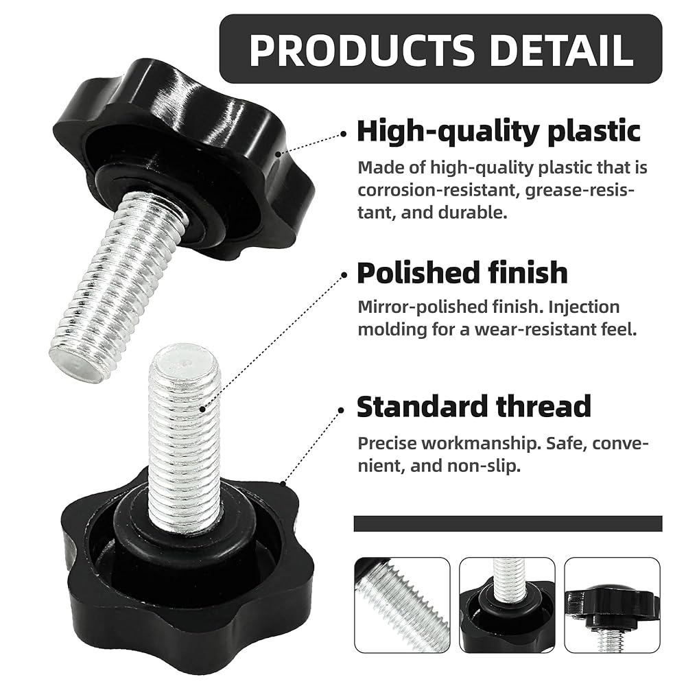 • 2. 【High-Quality Materials】Plastic and metal composite knob head, metal stud with deep threads, durable and burr-free for smooth operation.