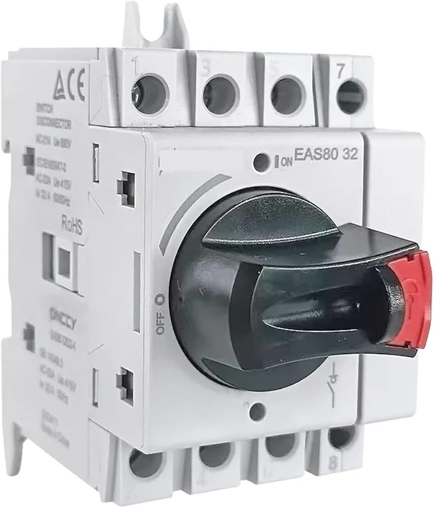 • EAS80 AC Isolation Switch,690V 3P+1 seccionador, Din Rail Mounting Rotating Handle with Lock, Disconnector Switches