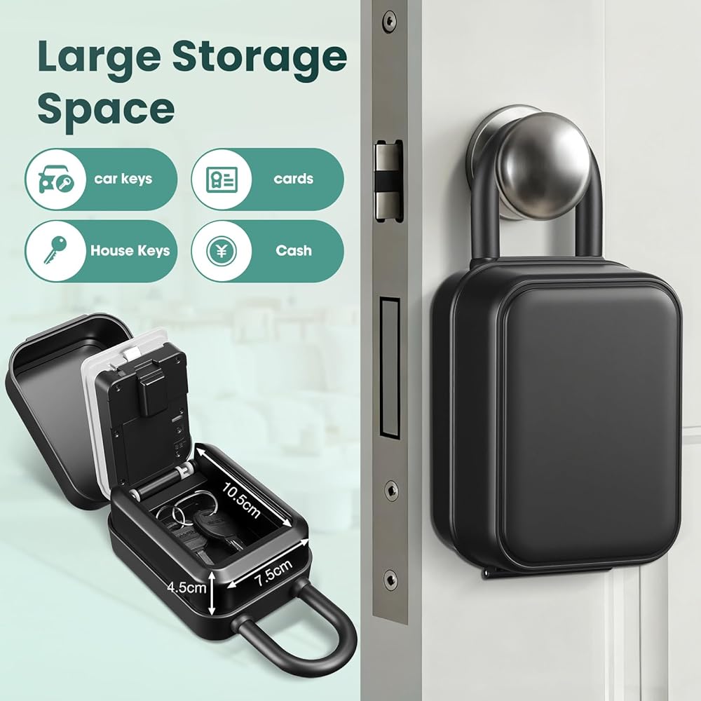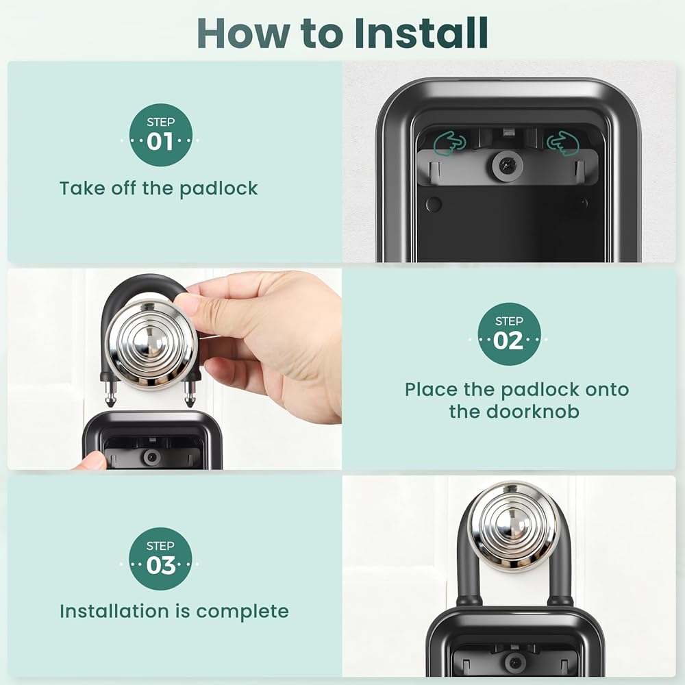 【مع القيد والمتانة في جميع الأحوال الجوية】تم تصميم جسم سبائك الزنك الحاصل على شهادة IP65 من أجل المرونة، وهو يقاوم الماء والغبار ودرجات الحرارة القصوى (-20 درجة مئوية إلى 55 درجة مئوية). بفضل القيد القابل للإزالة، يمكن تعليق خزنة المفاتيح هذه بسهولة في أي مكان (مثل مقابض الأبواب أو السور) بدون أدوات. يتم قفل القيد مع الوحدة الرئيسية لمنع السرقة.