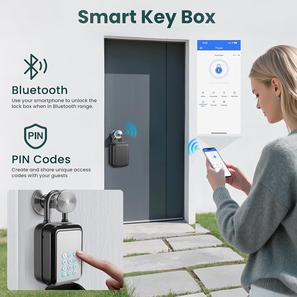 【قفل المفتاح الذكي】تحكم بشكل كامل في مفاتيحك باستخدام تطبيق TTLock المجاني - أنشئ كلمات مرور افتراضية مضادة للزقزقة (6-9 أرقام) وشارك أذونات الوصول محدودة الوقت مع العائلة أو المستأجرين أو عمال النظافة (لا يدعم WiFi).