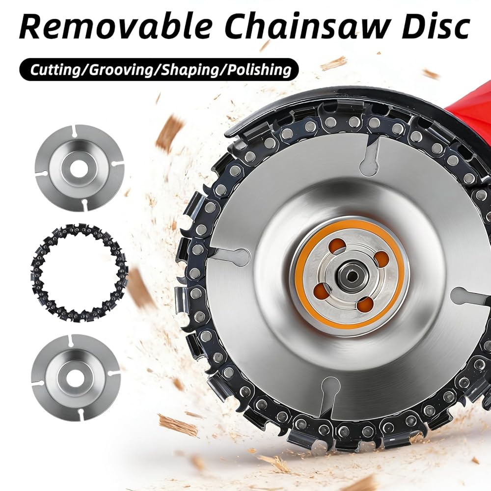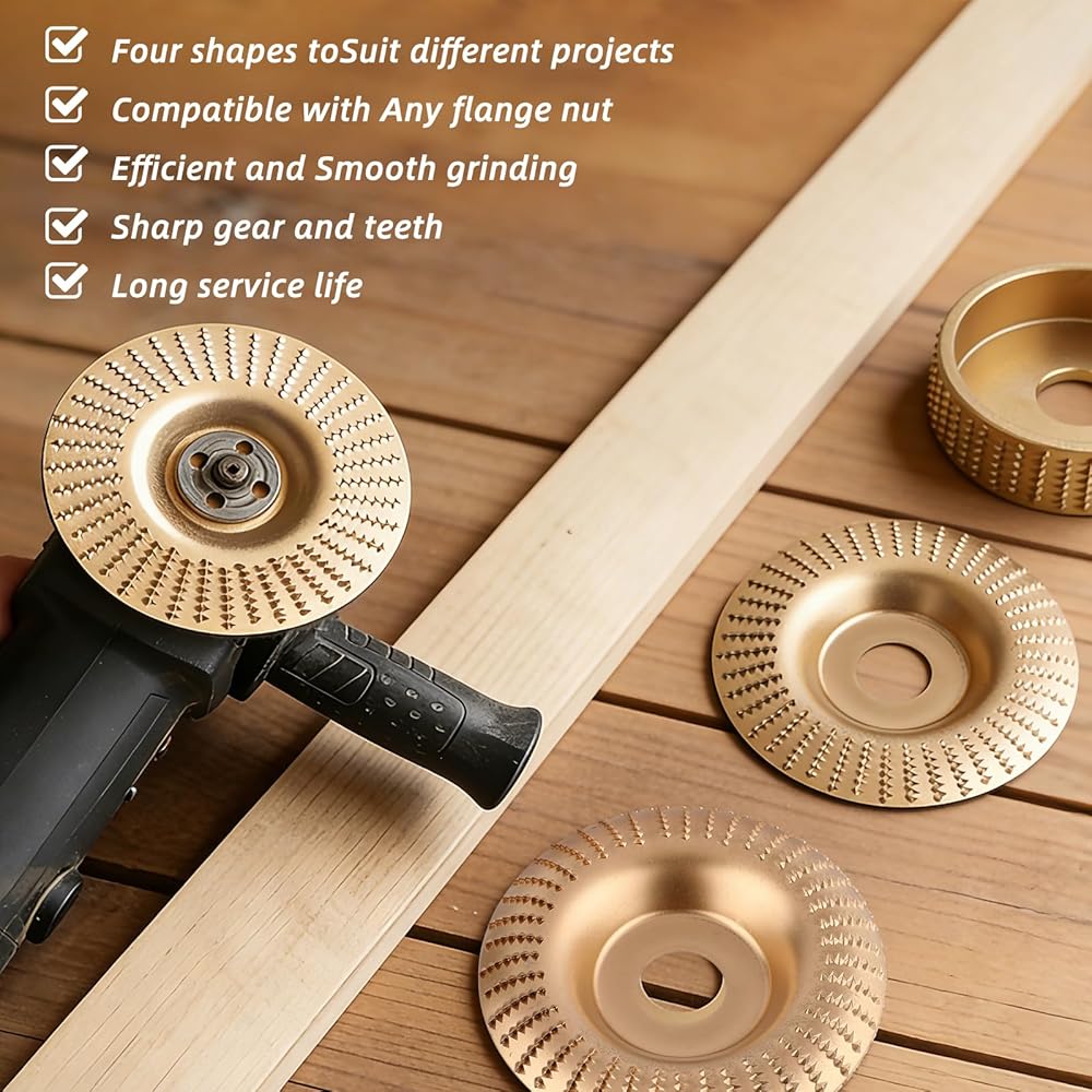 Compatibility: This wood grinding wheel set is designed for use with all standard 4" or 4 1/2" angle grinders with 5/8" or 7/8" shafts. Fits for most angle grinders and manual grinders. The wood carving disc has a 7/8" shaft hole and comes with three adapter rings (7/8" to 5/8"), reducing the shaft diameter to fit 5/8" arbor angle grinders. The wood carving chain disc, grinding wheel, wood shaping disc have 5/8" shaft holes.