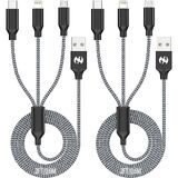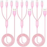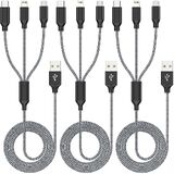 كابل شحن متعدد بطول 4 أقدام 3 عبوات 3 في 1 سلك شاحن، كابل شحن USB متعدد مضفر من النايلون السريع سلك شاحن هاتف متعدد مع موصلات USB ميكرو لايتنينج من النوع C للهواتف المحمولة