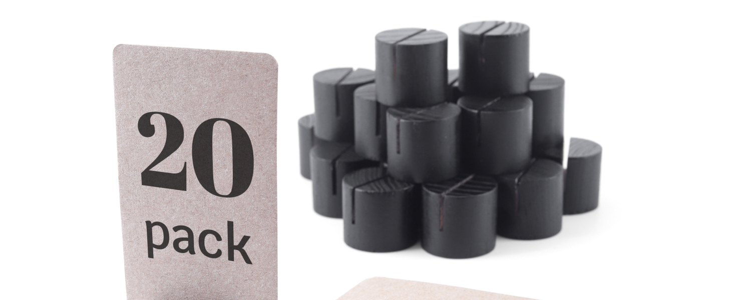 20 قطعة من حاملات أرقام الطاولة الخشبية الصغيرة - حاملات بطاقات المكان، وحاملات بطاقات طاولة العشاء، وحاملات بطاقات الاسم للطاولات، وحامل الصور الخشبية واللافتات (أسود)