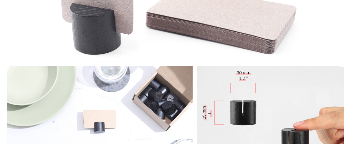 • الاستخدامات: مثالية لحمل أرقام الطاولة والأسماء وبطاقات أسماء الطعام وغيرها من المعلومات، مما يضيف لمسة احترافية إلى أي إعدادات طاولة.