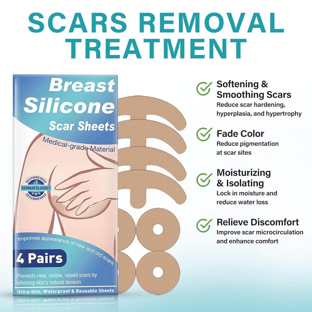 صفائح ندبة سيليكون رفيعة للغاية للثدي: استمتعي بإحساس "الجلد الثاني". تتميز صفائح ندبات الثدي المصنوعة من السيليكون بأنها رفيعة جدًا ومرنة، مما يضمن بقائها في مكانها أثناء الحركة بينما تكون غير مرئية تمامًا تحت الملابس