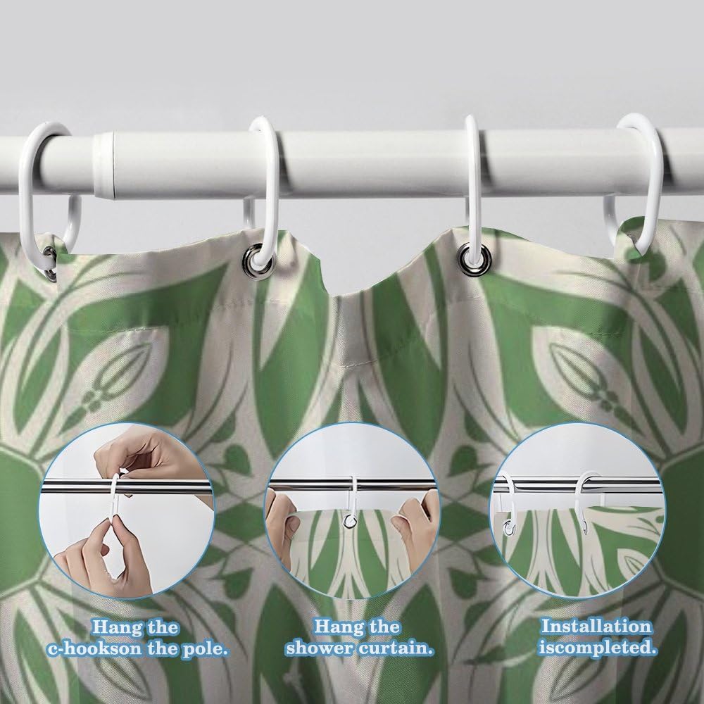 Comes with 12 metal eyelets and thick C-shaped hooks—glides smoothly, no jamming, extending lifespan. Single-sided digital printing with heat dye sublimation resists fading, keeping patterns vibrant for years. It's a luxury shower curtain blending durability and elegance.