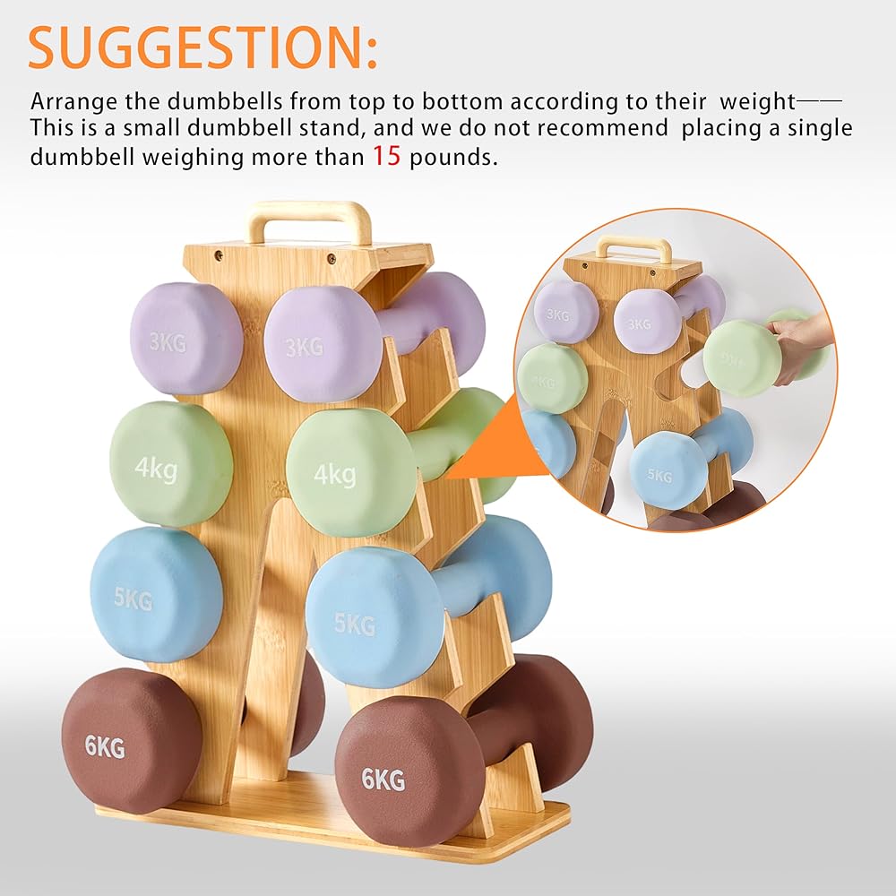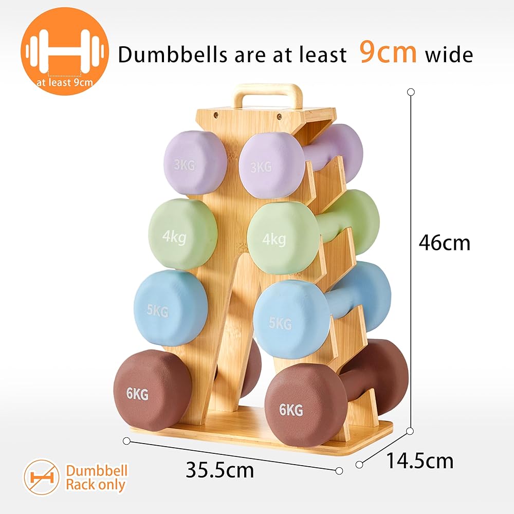 حامل دمبل خشبي لتخزين صالة الألعاب الرياضية المنزلية - حامل على شكل حرف A موفر للمساحة لتنظيم أوزان 8-15 رطل، ويحمي الدمبل من الخدوش، وتخزين تمرين مدمج وأنيق (الرف فقط)
