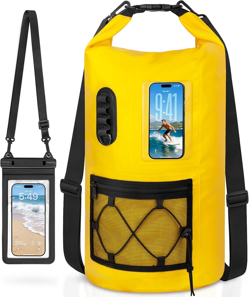 حقيبة ظهر جافة ذات سعة كبيرة: يمكن للجيب الشبكي الأمامي والأشرطة حمل الأشياء الصغيرة والمناشف. يوجد في الداخل جيب شفاف للهاتف. توفر الحجرة الرئيسية مساحة واسعة لحمل جميع مستلزماتك الخارجية بسهولة. تتميز الواجهة أيضًا بتصميم معلق لربط عناصر مثل زجاجة المياه الخاصة بك