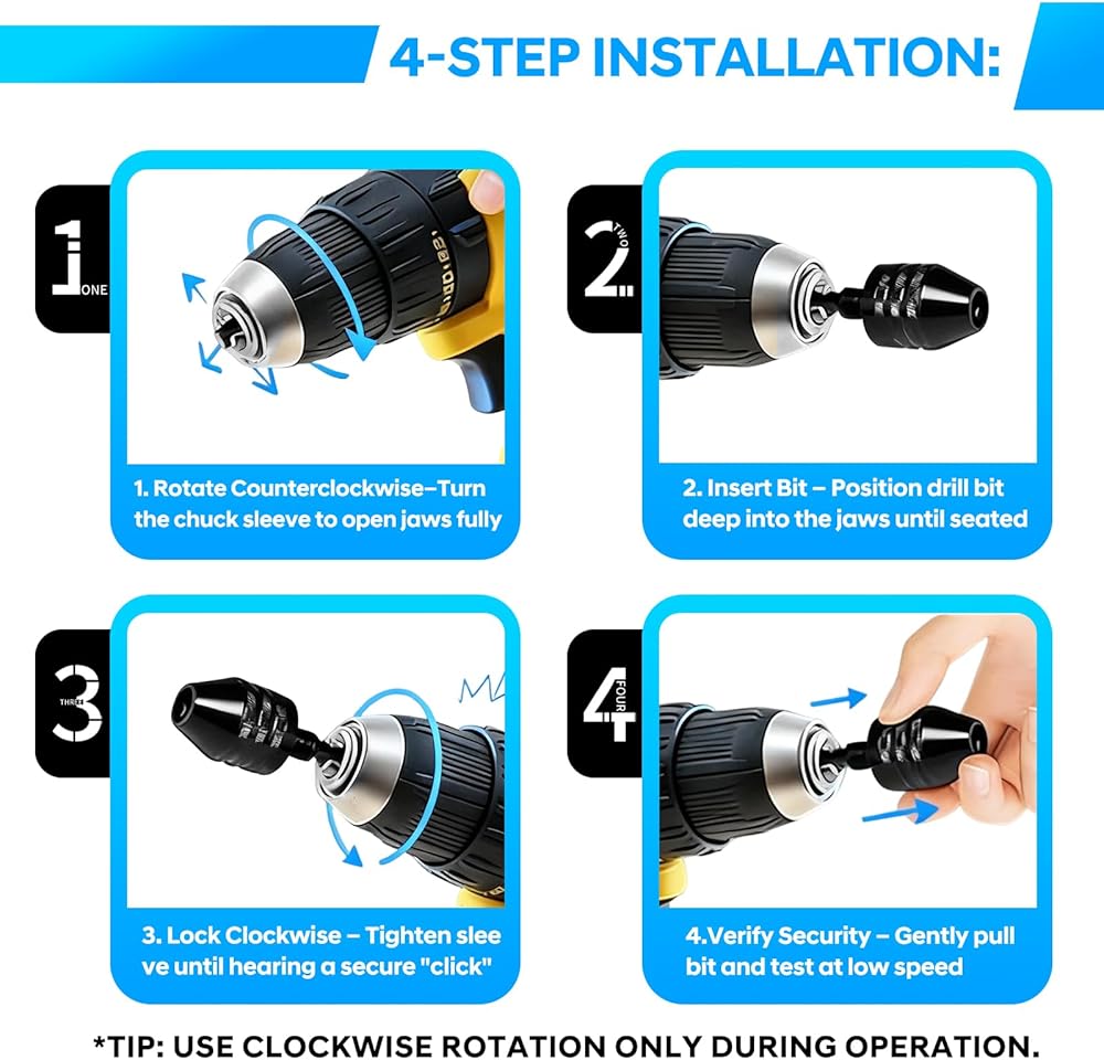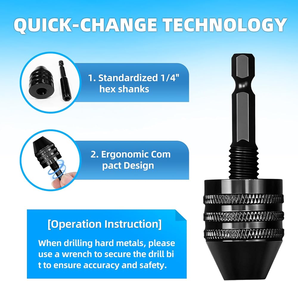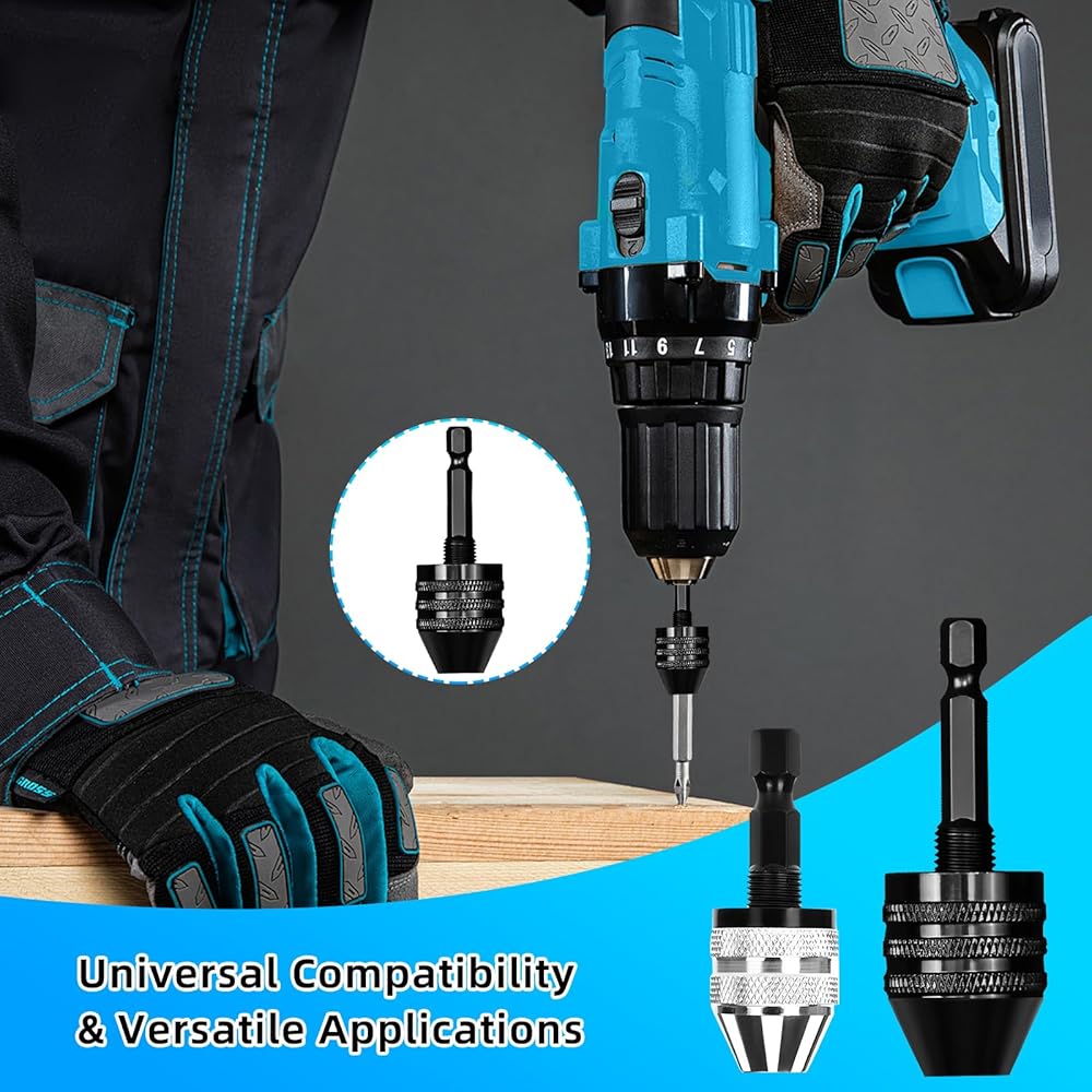 • Premium Material: Precision-crafted from premium carbon steel, these chucks maintain secure bit grip through repeated woodworking, metal drilling, and intensive DIY operations. The resilient construction resists deformation under vibration for sustained performance.