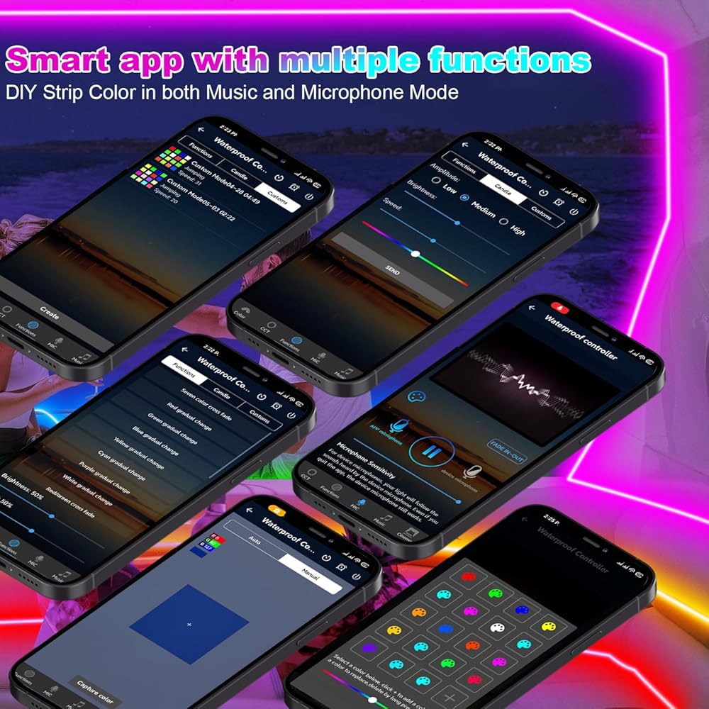 مزامنة مع الموسيقى الخاصة بك وضبط جدولك الزمني: حوّل عائمتك إلى حلبة رقص عائمة مع شرائط إضاءة LED خارجية مقاومة للماء متزامنة مع الموسيقى والتي تنبض مع إيقاع قائمة التشغيل الخاصة بك. قم ببرمجة جداول زمنية مخصصة لتنشيط الألوان والأوضاع الديناميكية (الوميض/التلاشي/الثبات) في أوقات محددة، بينما يعمل الاسترداد التلقائي الذكي على إعادة تشغيل إعداداتك الأخيرة بعد فقدان الطاقة. سواء كنت تستضيف حفلة أو تبحر عند الغسق، يمكنك تخصيص السطوع والألوان والتوقيت عبر التطبيق، مما يؤدي إلى تحقيق التوازن بسهولة بين الطاقة النابضة بالحياة أو الأجواء الهادئة لتتناسب مع رحلتك