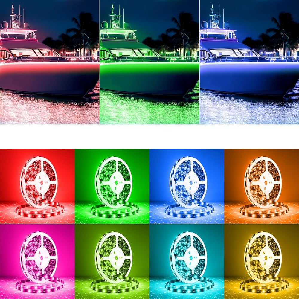 أضواء القارب LED مقاومة للماء، شريط أضواء LED للقارب العائم بطول 40 قدمًا، شريط إضاءة LED بحري، متعدد الألوان 12 فولت RGB LED شرائط خارجية IP67، إضاءة صيد ليلية مع تطبيق وجهاز تحكم عن بعد لباس جون، RV، كاياك