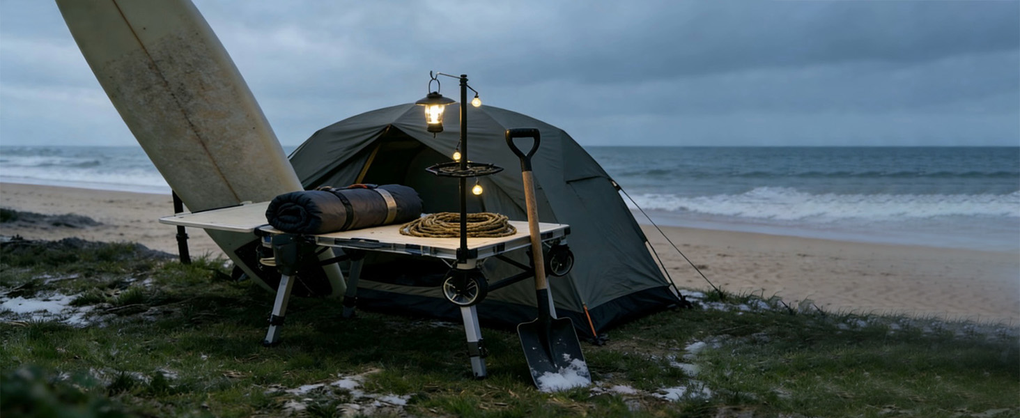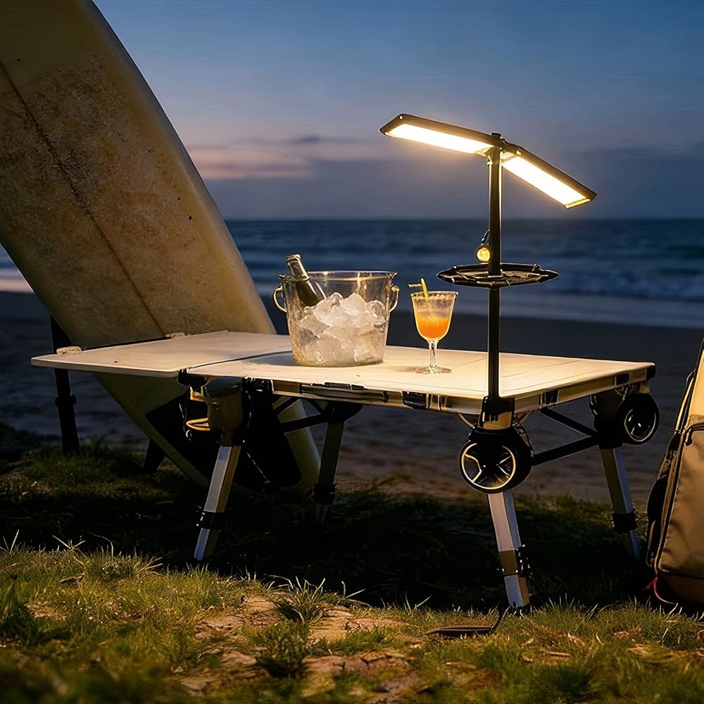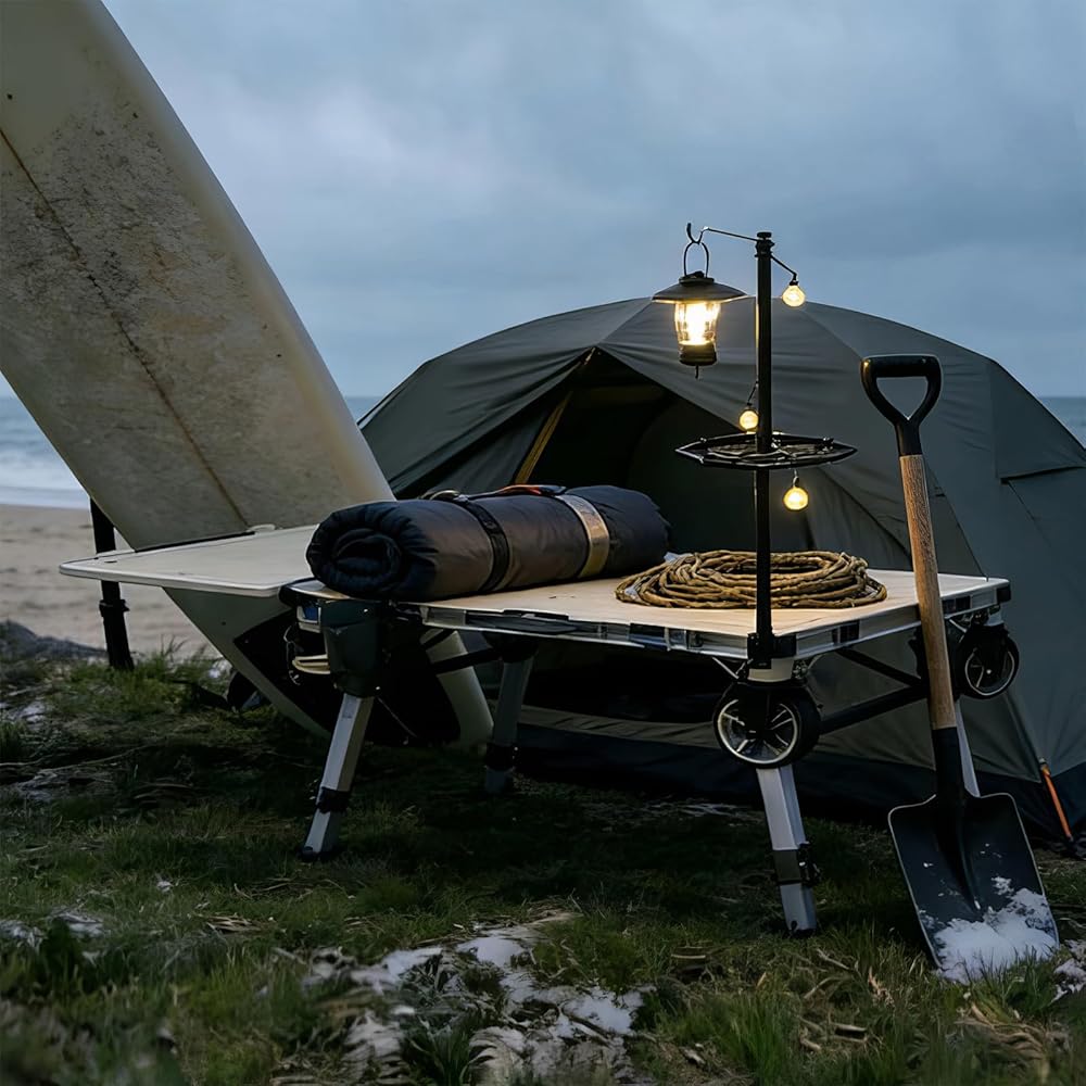 • ارفع تجربة التخييم أو الفناء الخلفي لديك على الفور، حوّل طاولة التخييم المحمولة وعربة المرافق إلى المحور النهائي لمساحتك الخارجية. يضيف هذا الدعامة فائدة مهمة، حيث يوفر إضاءة علوية لإبقاء الحشرات بعيدًا عن طاولتك، أو يضيء منطقة عملك للمشروعات المسائية، أو يخلق مزاجًا مثاليًا للتجمع في الفناء الخلفي. فهو يفتح طبقة جديدة ومريحة من الوظائف لعربتك القابلة للطي والمتعددة الاستخدامات بالفعل.