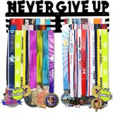 حامل شماعات ميداليات عرض خطافات رف فولاذية إطار تثبيت على الحائط أكثر من 60 ميدالية - منظم تخزين خطاف ميدالية رياضية لا تتخلى أبدًا عن الشريط مع قضبان تعليق سهلة باللون الأسود (لا تتخلى أبدًا عن الرف) in Kuwait