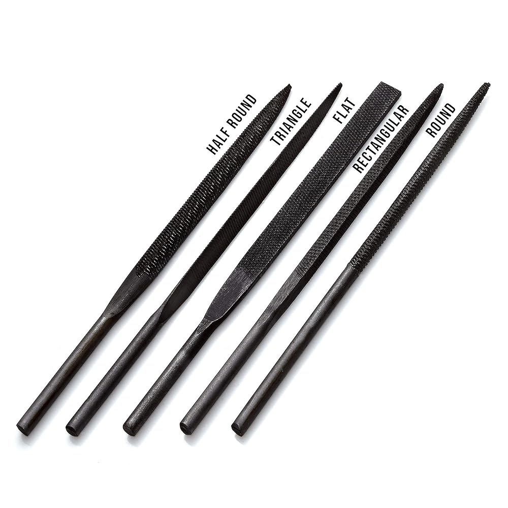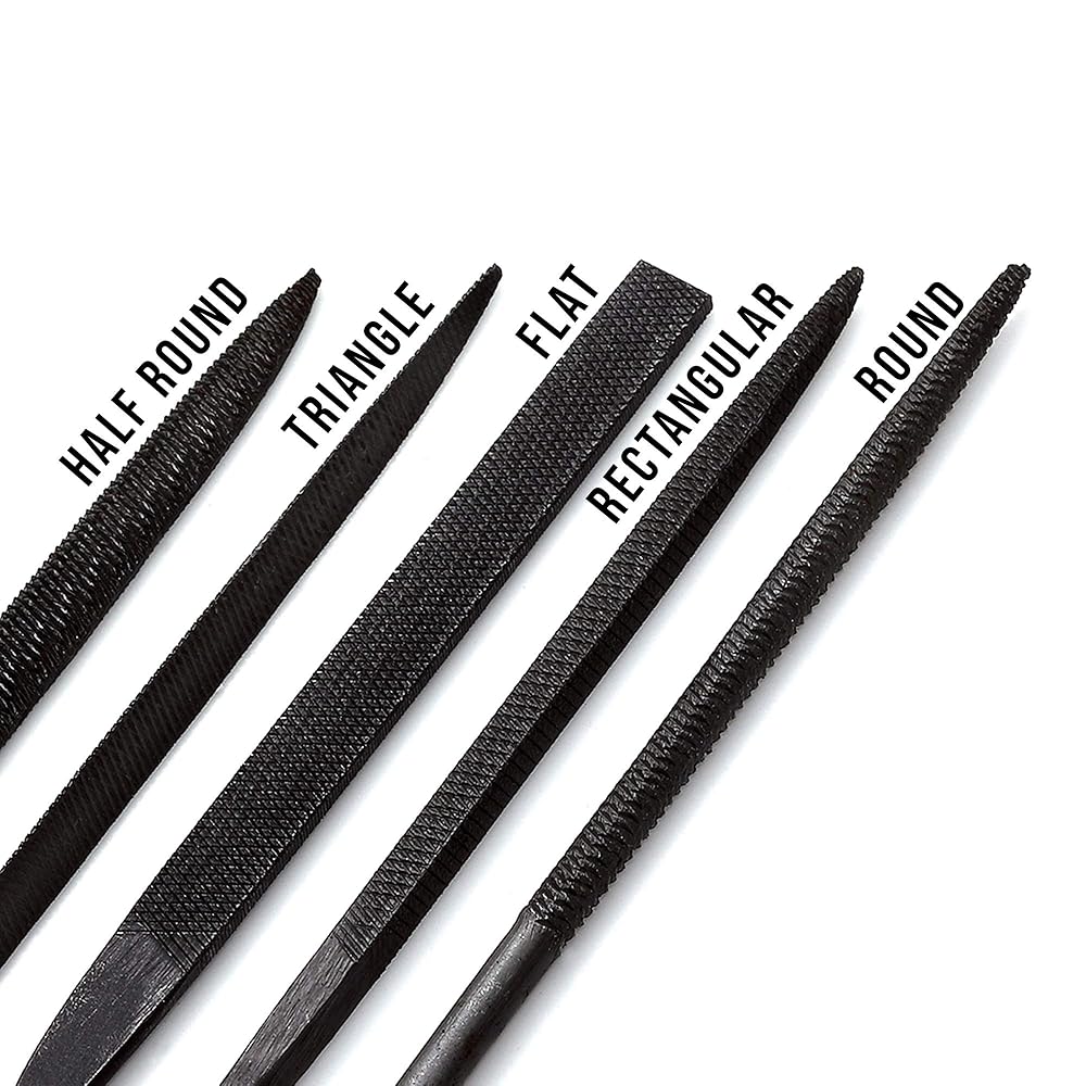 يحتوي على مبرد إبرة ذو أسنان خشنة مستطيلة، مستديرة، نصف دائرية، مثلثة، مربعة واحدة لكل منها.