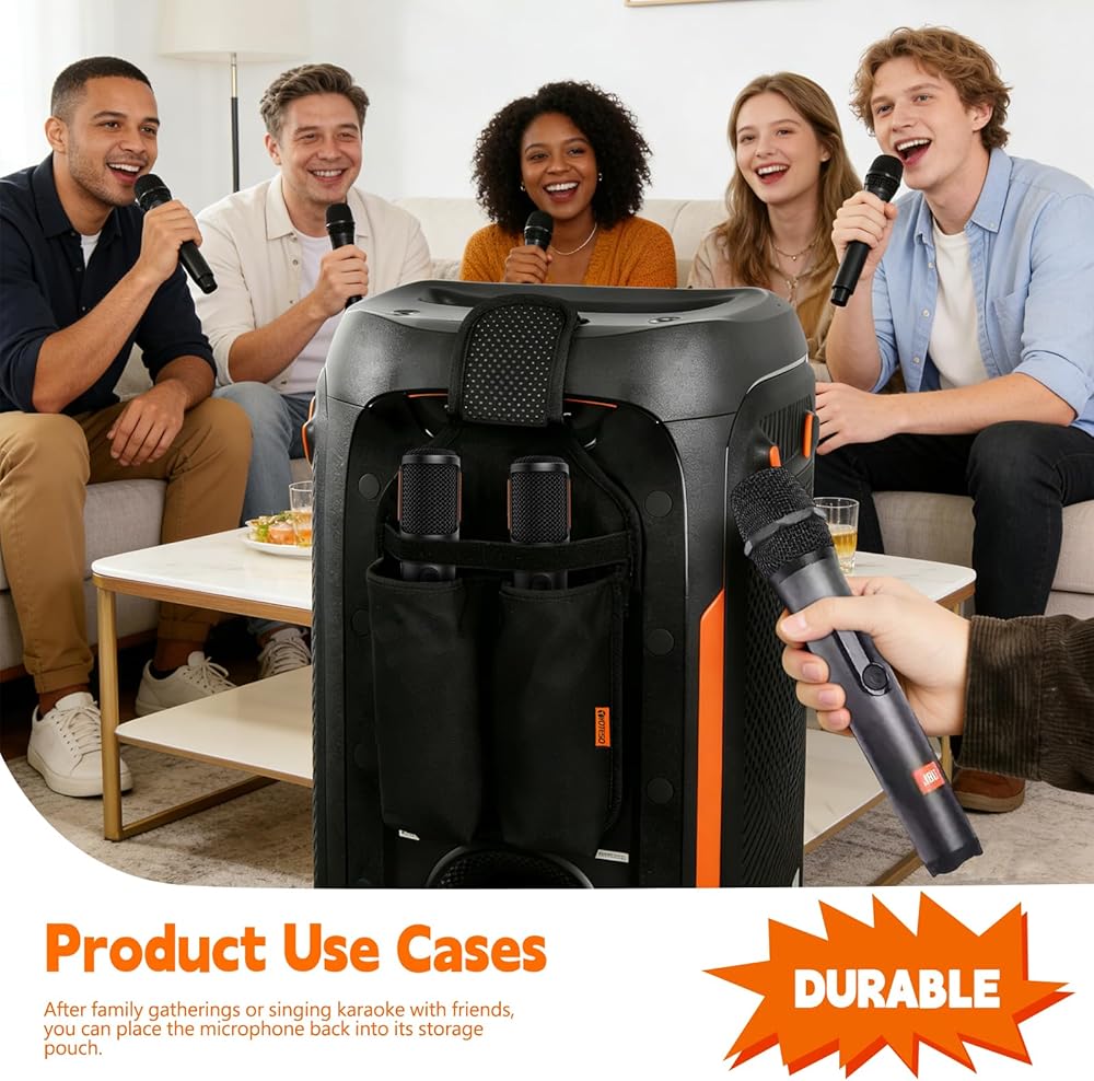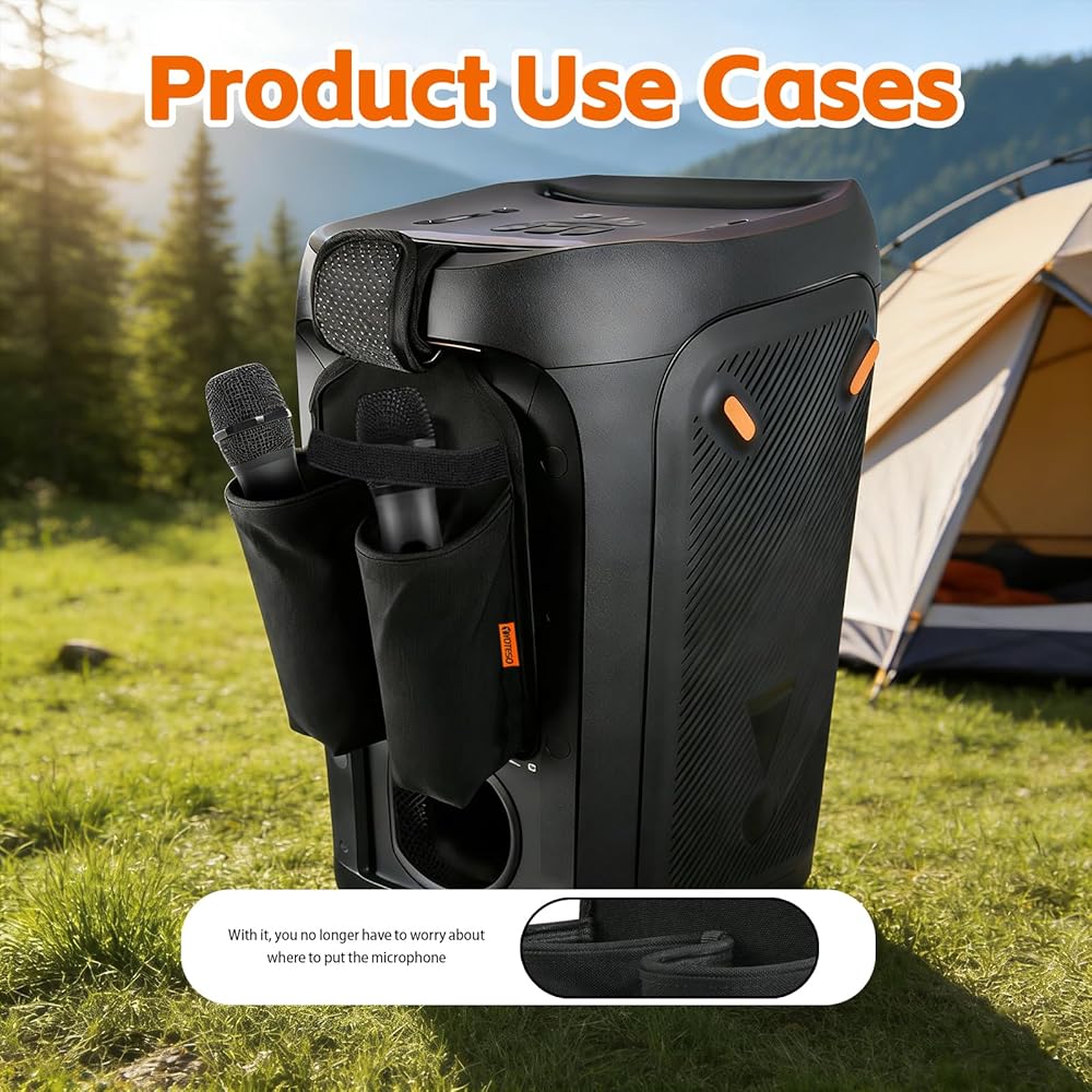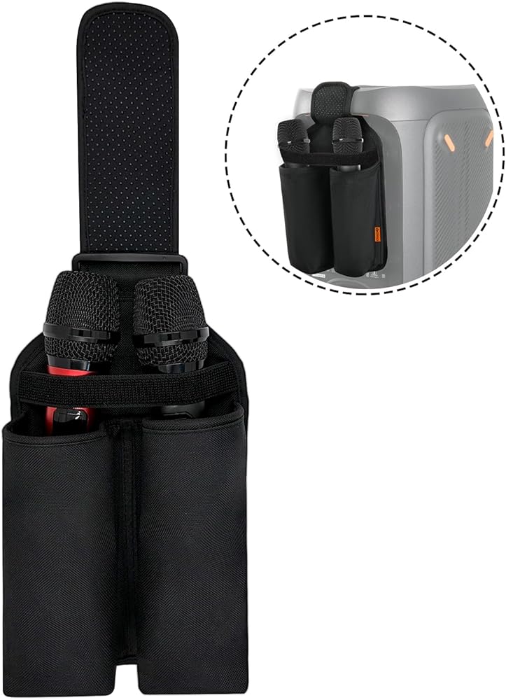 التوافق: مصممة خصيصًا للعمل مع أنظمة الميكروفون اللاسلكية PartyBox وغيرها من إعدادات الميكروفون اللاسلكية المشابهة، تتميز حافظة الميكروفون اللاسلكية القوية هذه بتصميم معلق مريح، مما يسمح لك بربطها بسهولة بمقابض موديلات JBL Partybox الشهيرة مثل 110، 120، 310، 320، و710 للوصول السريع وإعداد خالٍ من الفوضى.