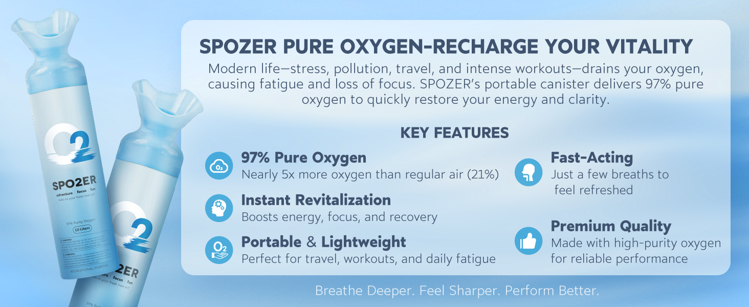 COMPACT & PORTABLE: SPOZER oxygen cans are designed for on-the-go lifestyles. Perfect for hiking packs, gym bags, or office drawers—ready whenever you need a quick oxygen boost.