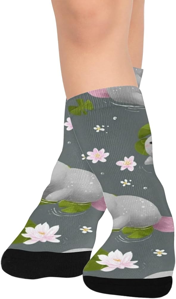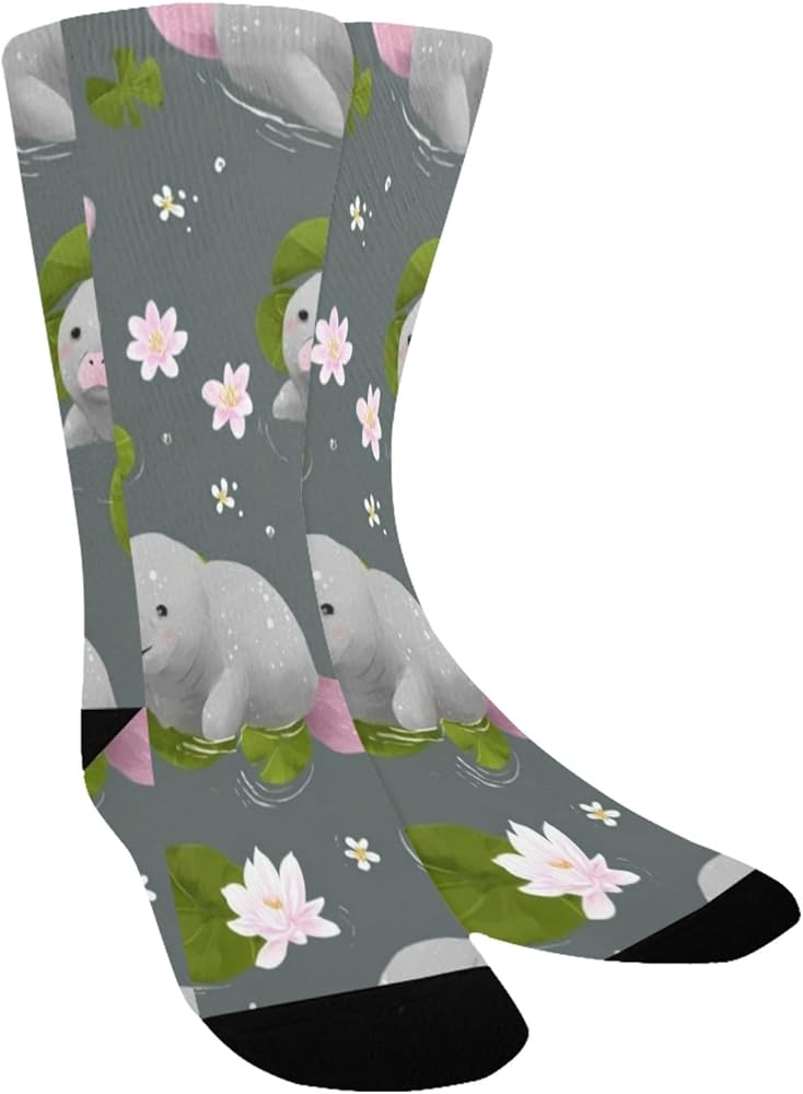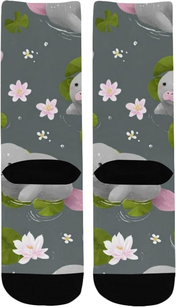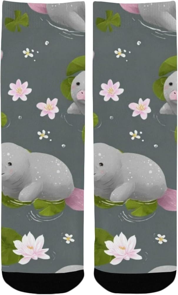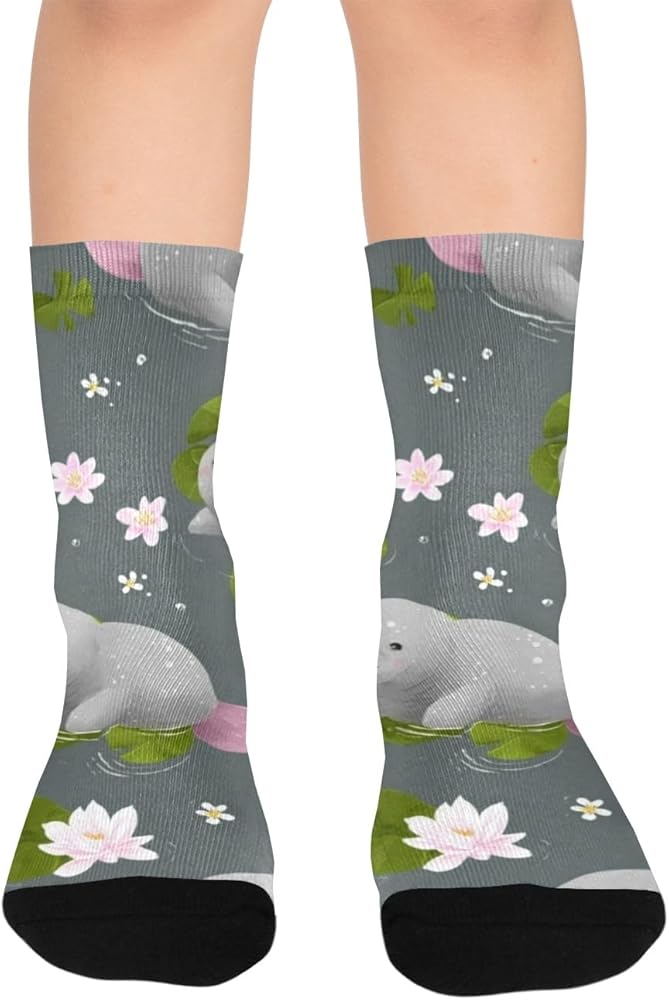 جوارب المشي لمسافات طويلة بطباعة خروف البحر واللوتس - جوارب شتوية حرارية سميكة دافئة للأولاد والبنات للمدرسة، والارتداء اليومي والأنشطة الخارجية
