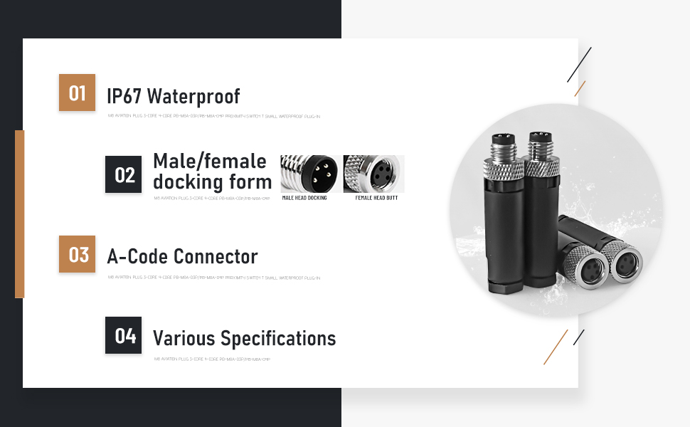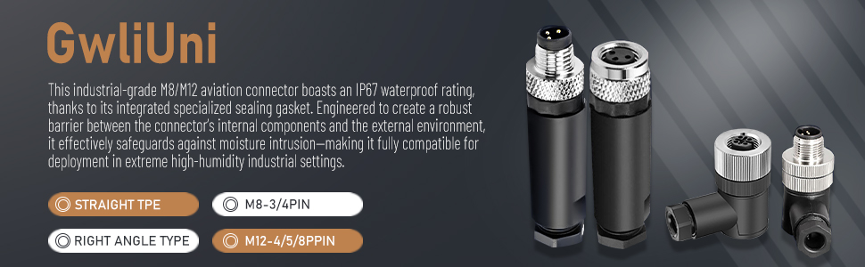 ميزة IP67 المقاومة للماء: تم تصميم هذا الموصل M12 باستخدام حشية إغلاق خاصة، حيث يحجب الرطوبة والغبار، ويعزل المكونات الداخلية عن البيئات الخارجية. مناسب للرطوبة العالية والإعدادات الصناعية القاسية