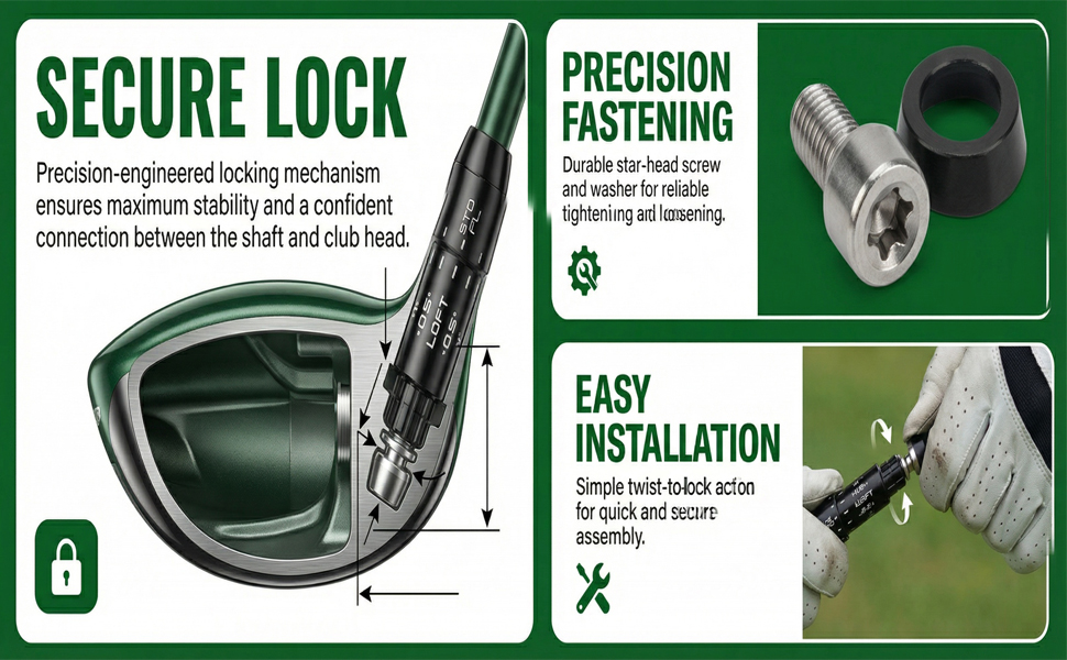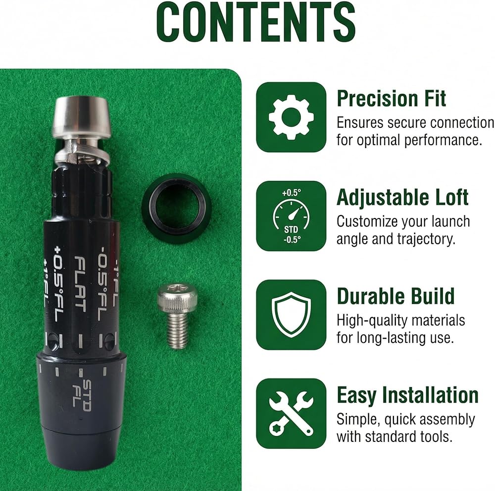 5: حزمة كاملة لسهولة الترقية - تتضمن قطعة واحدة من محول الجولف الذي يعمل مع عمود المحرك ومسامير محول الجولف، ويدعم تعديل زاوية 36 درجة، مما يجعله حلاً شاملاً لتخصيص النادي.