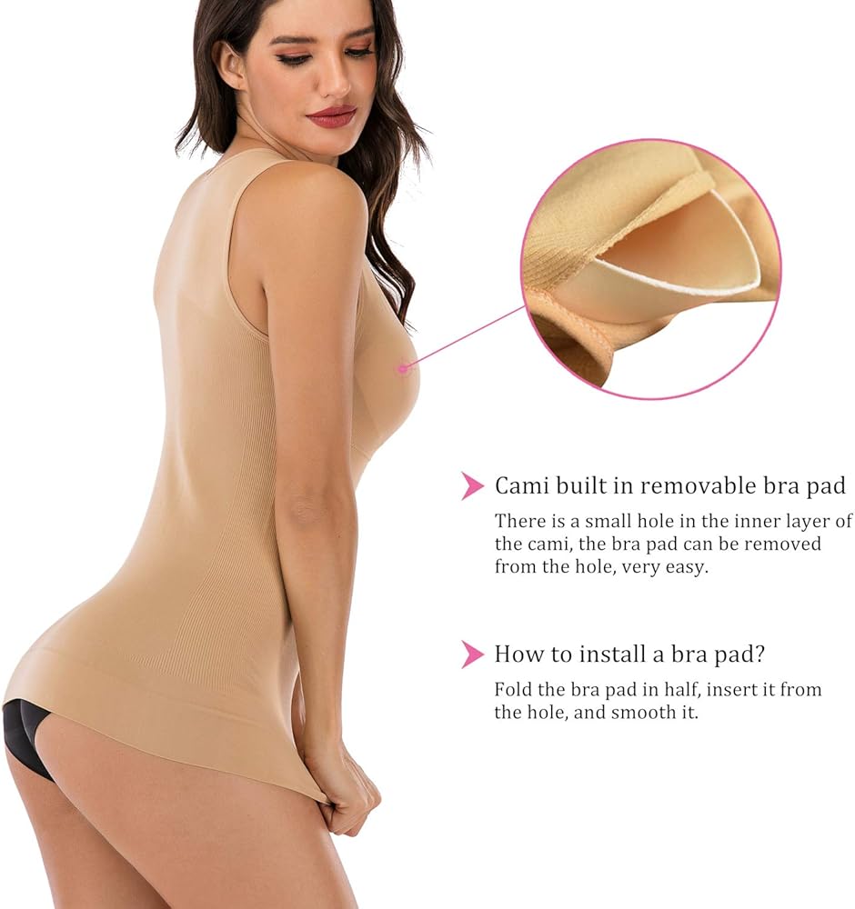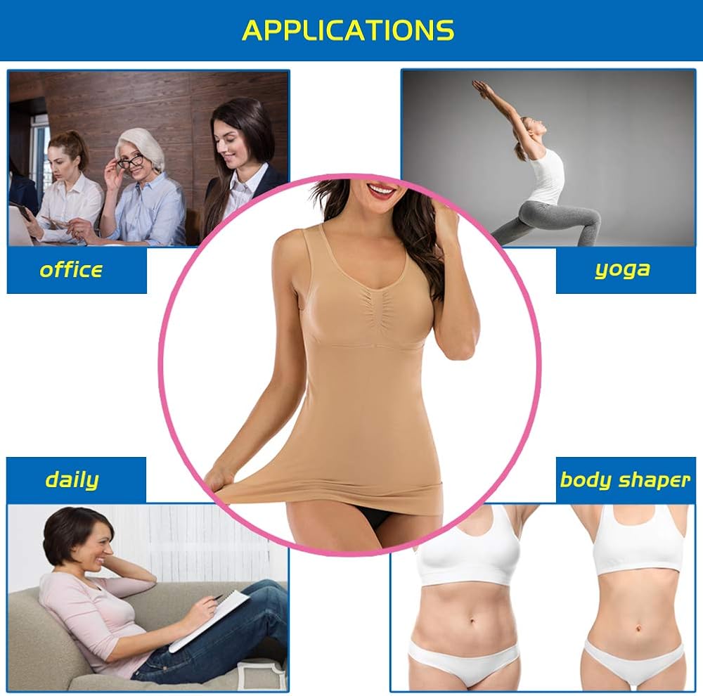 ملابس داخلية بدون خياطة للنساء: قميص بدون أكمام مضغوط يشبه غير مرئي عند ارتدائه تحت الملابس، ويمكن ارتداؤه مع السراويل الكاجوال أو سراويل اليوغا الضيقة أو السراويل القصيرة أو التنانير أو تحت سترة.