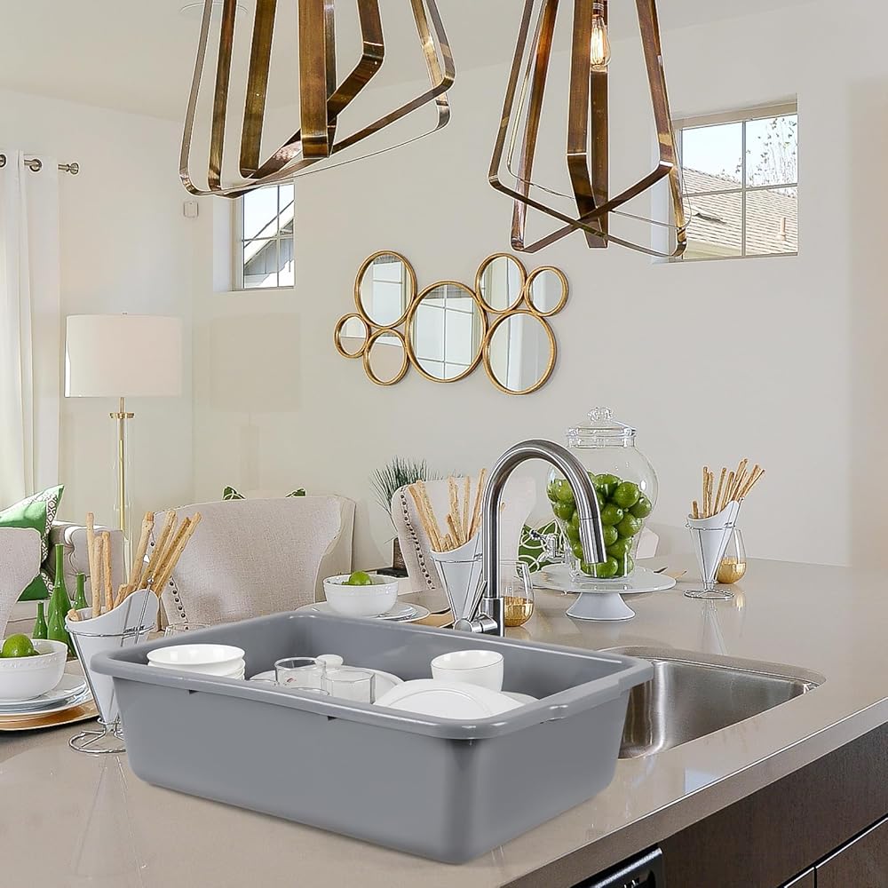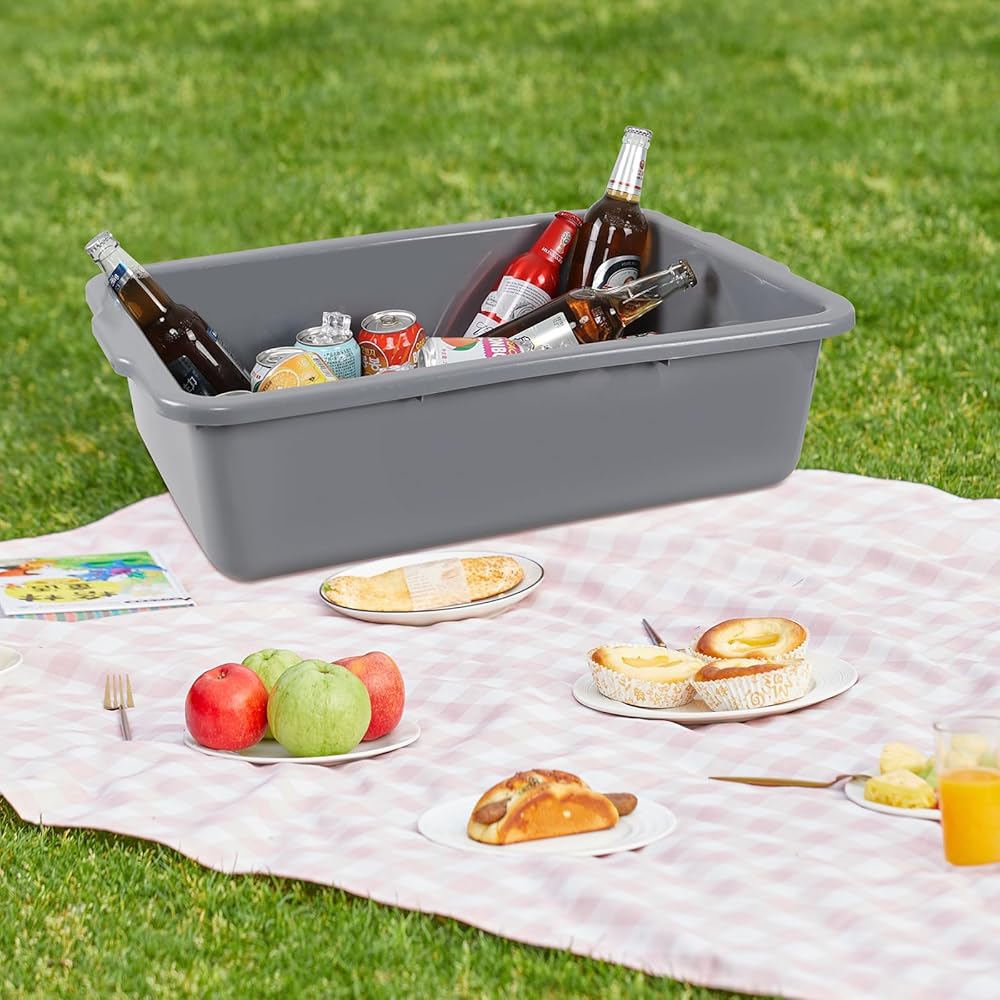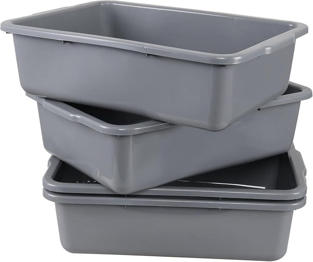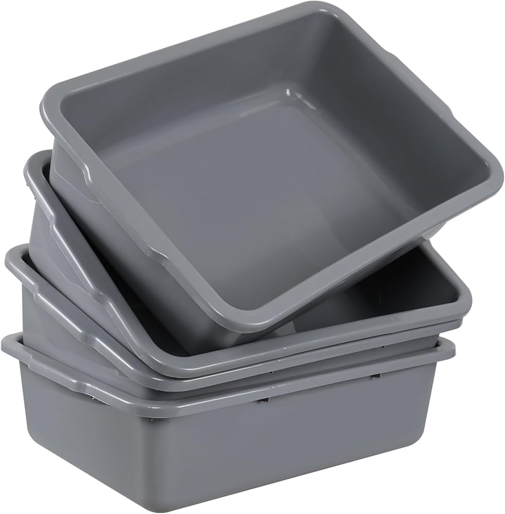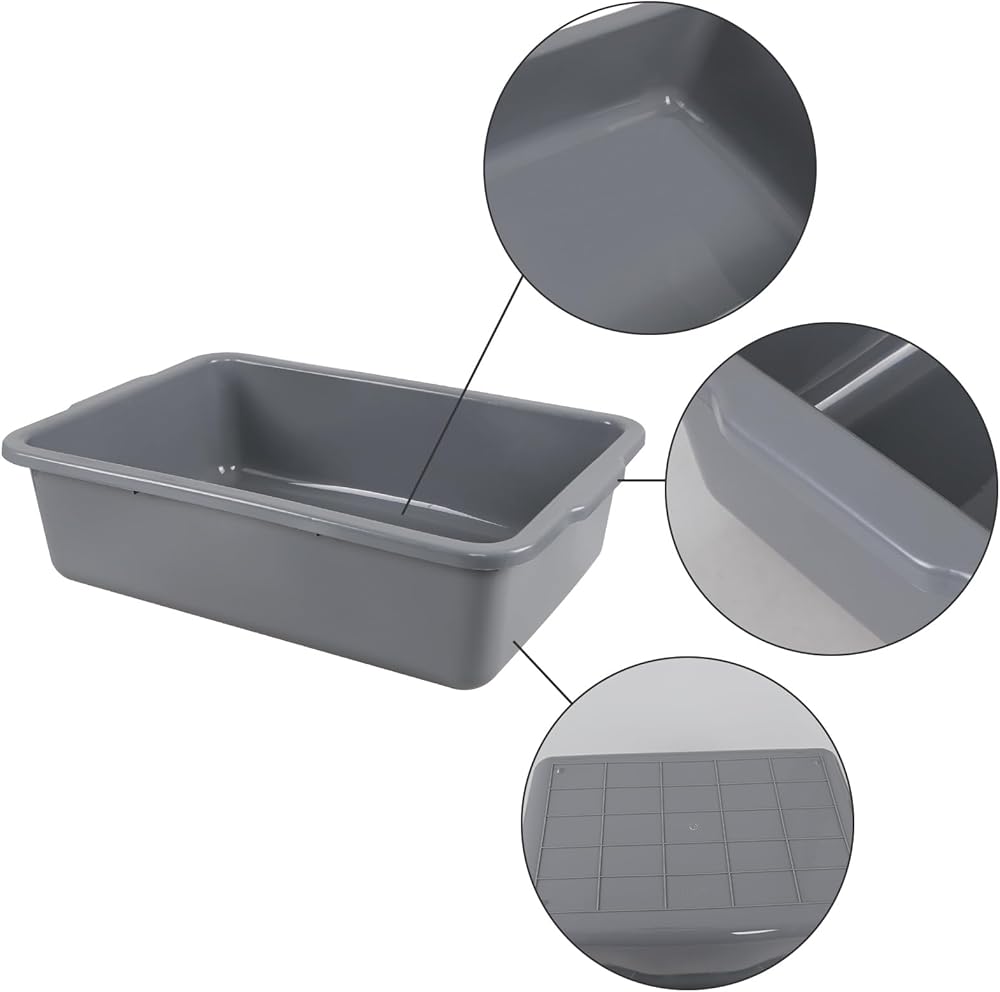 4 عبوات من أحواض الحافلات الكبيرة سعة 32 لترًا، صينية الحافلات التجارية/حوض الأطباق/أحواض الغسيل، باللون الرمادي