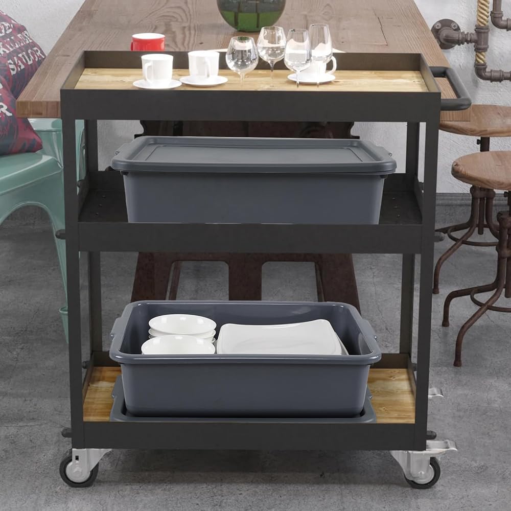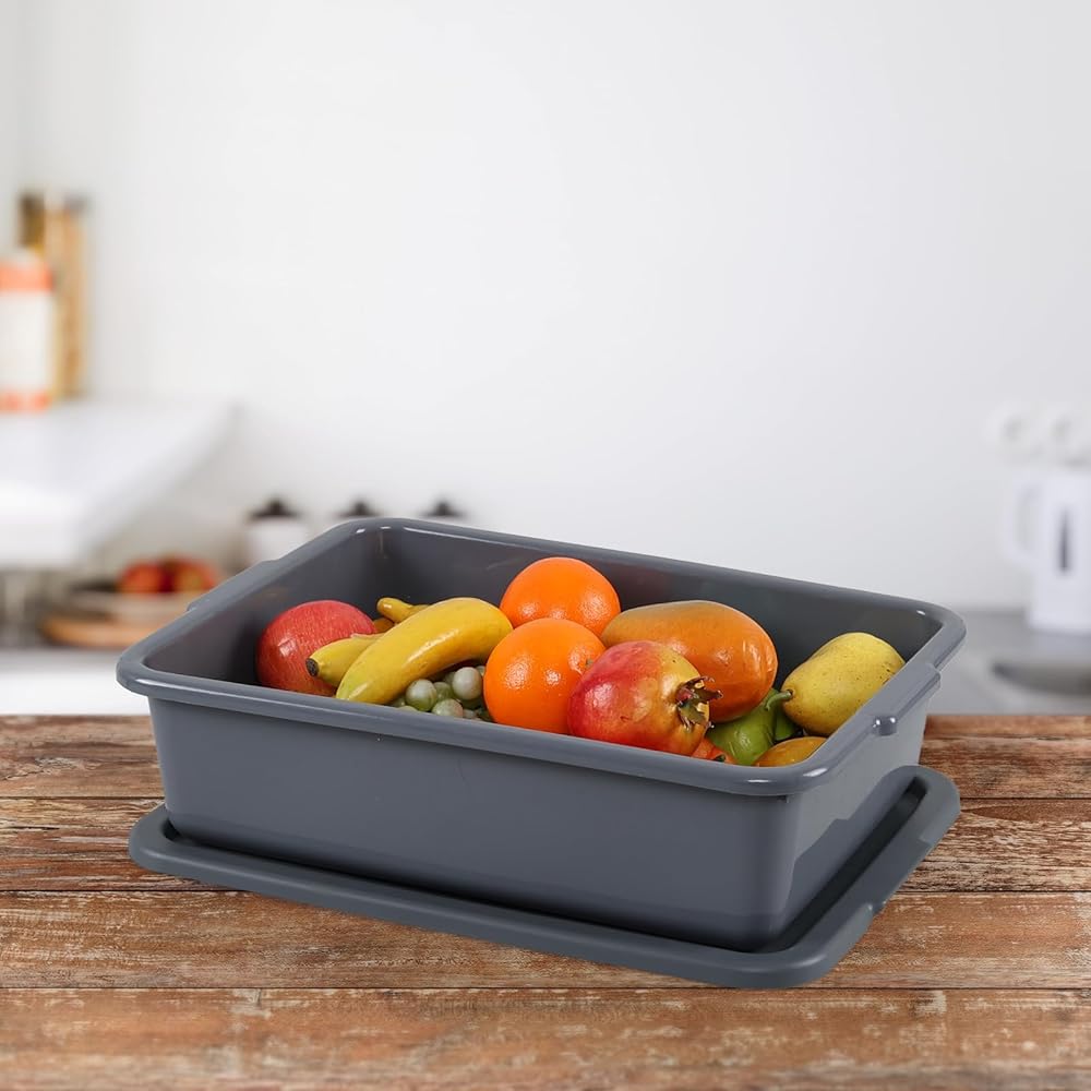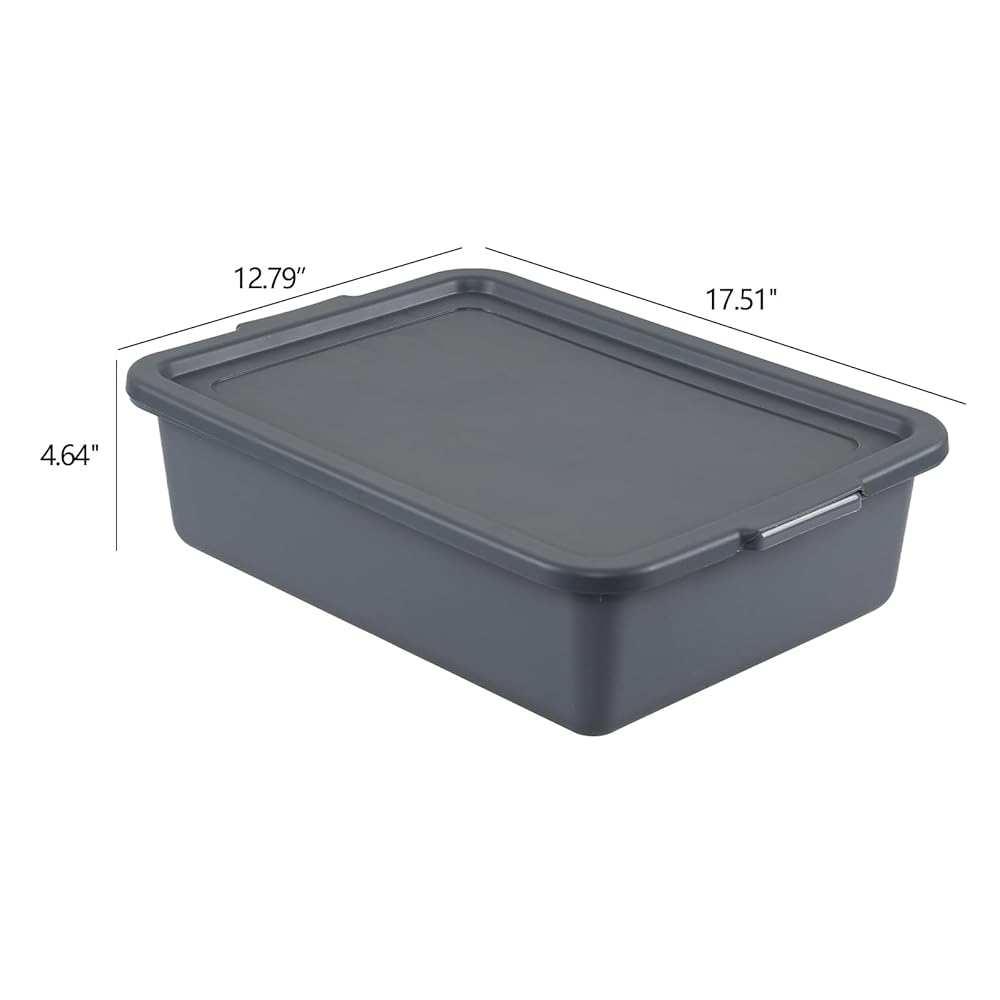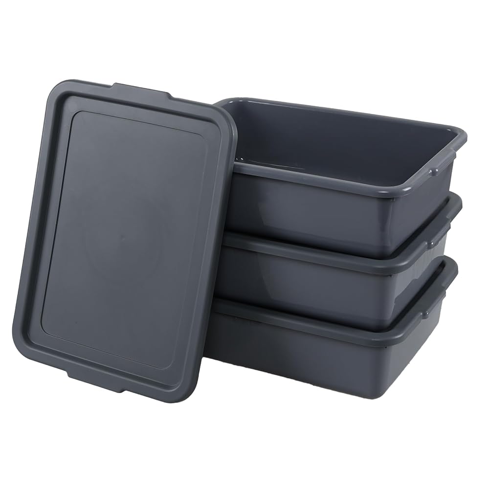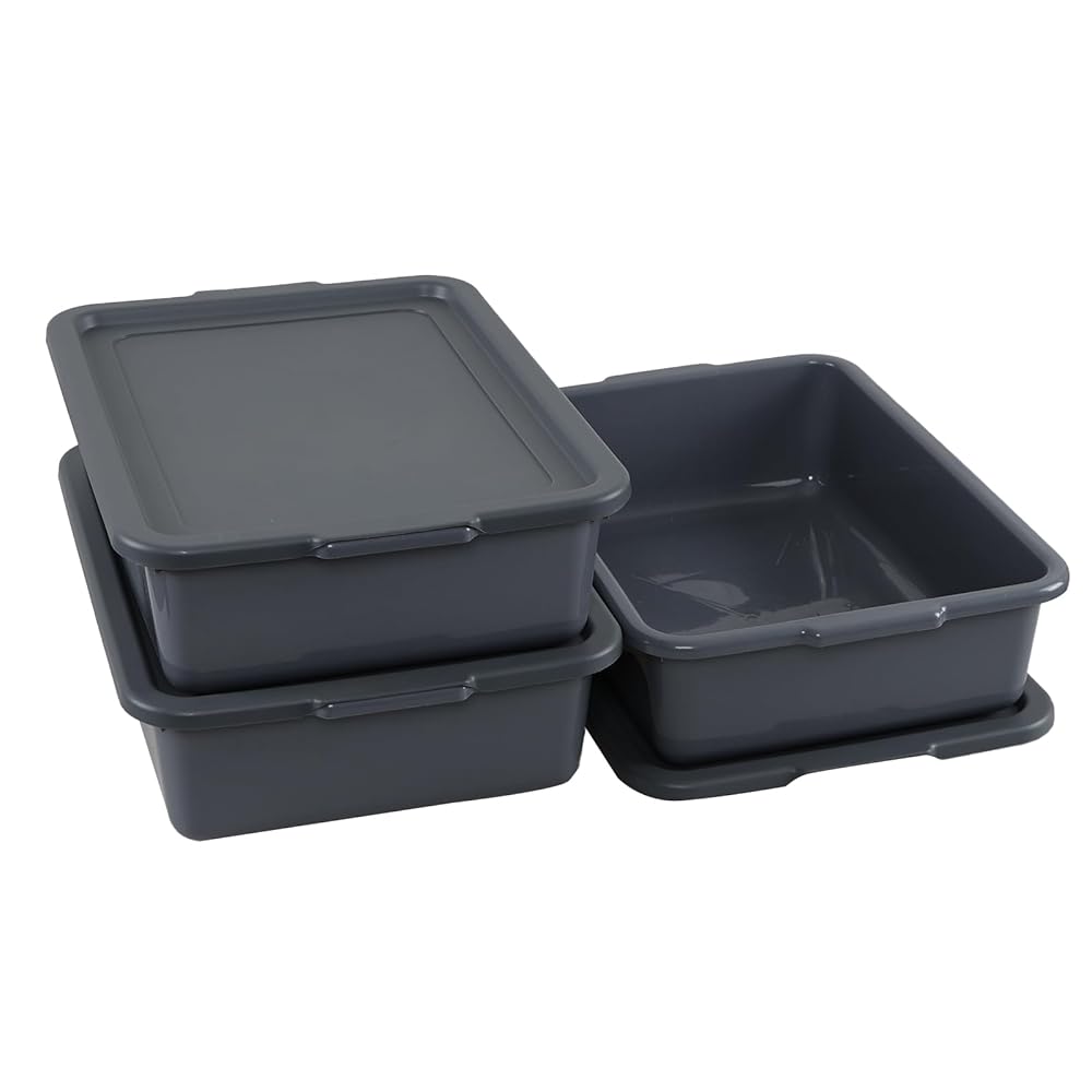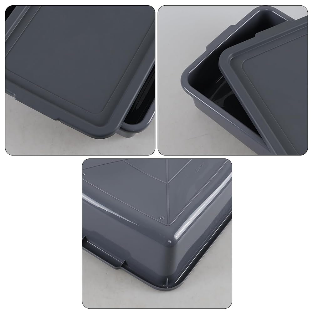 Melontray 3-Pack 13 L Plastic Commercial Bus Box with Lid, Restaurant Bus Tubs, Grey