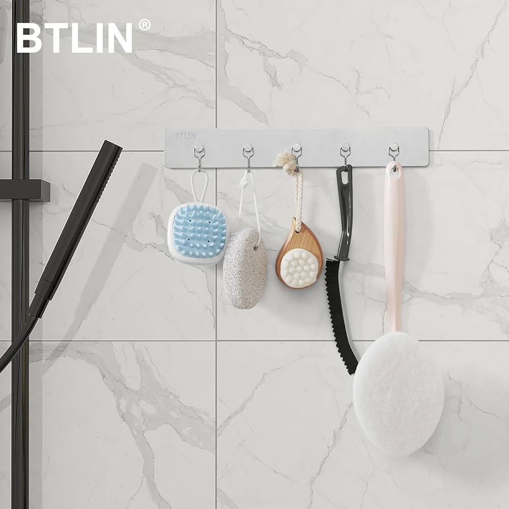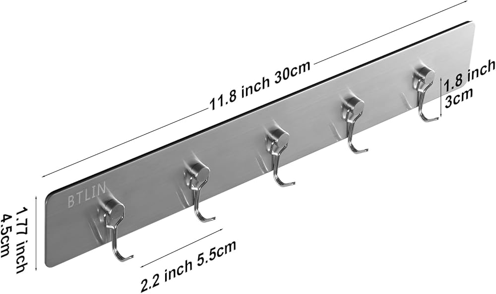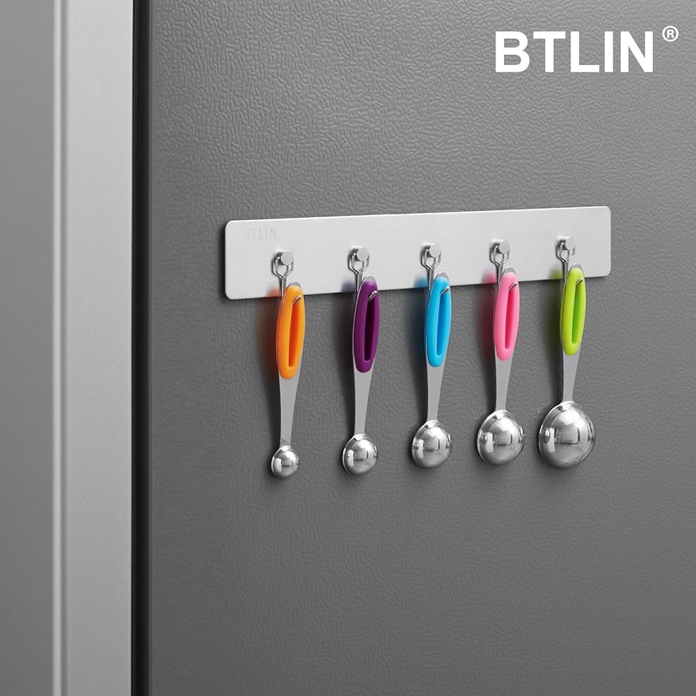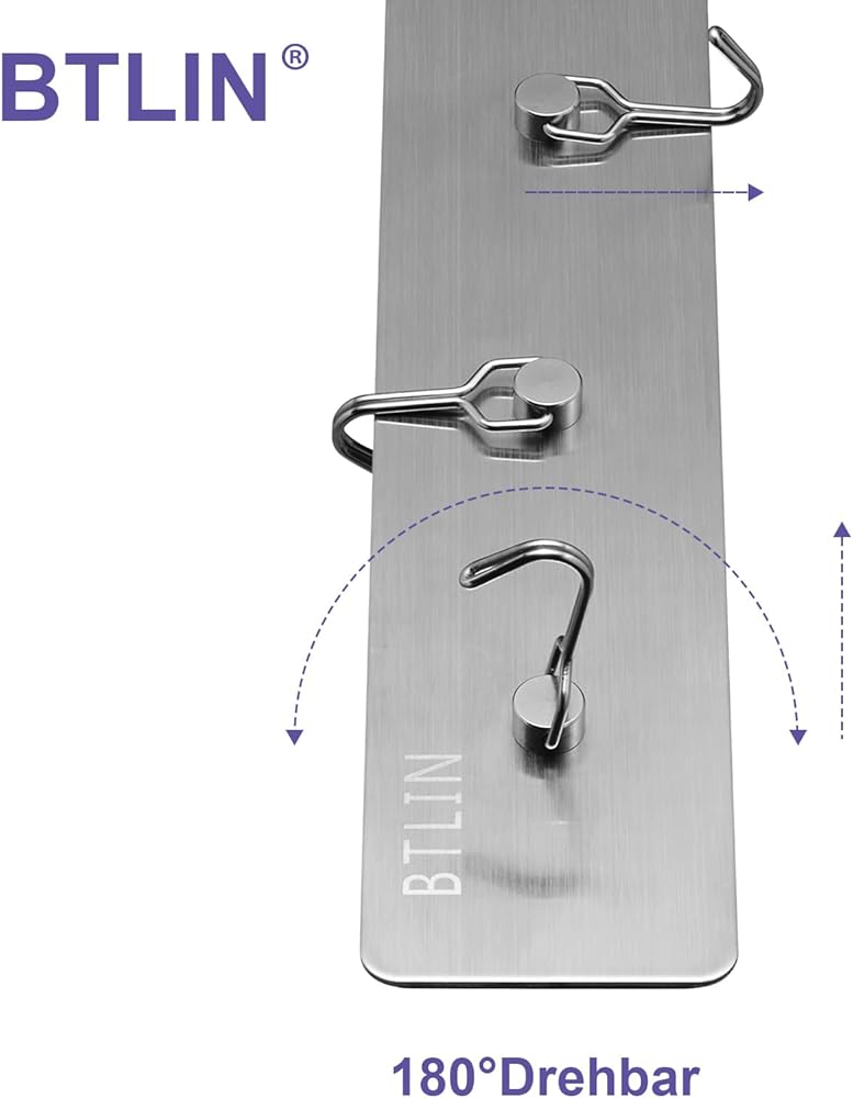 رف خطاف مغناطيسي من BTLIN، من الفولاذ المقاوم للصدأ، تثبيت مغناطيسي قوي، مثالي للمطبخ، الثلاجة، المرآب، الشواء، الأدوات، 5 خطافات، 30 سم، مقاوم للصدأ، لمسة نهائية فضية عصرية