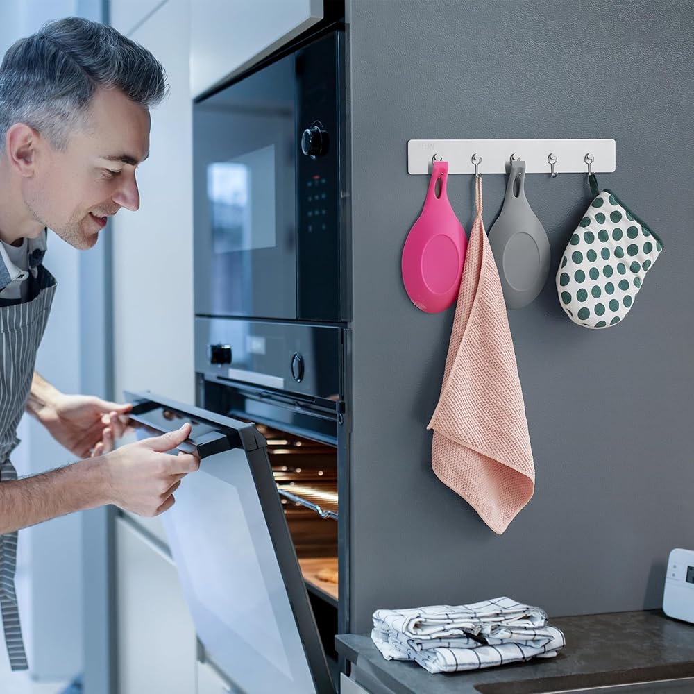 • 【خطافات دوارة متعددة الاستخدامات】يمكن للخطافات الخمسة أن تدور 180 درجة، مما يوفر المرونة لتعليق العناصر عموديًا أو أفقيًا، حسب احتياجاتك. سواء كان على جانب الثلاجة، أو تحت غطاء المطبخ، أو حتى في المرآب الخاص بك، فإن هذا الرف يمكن تعديله ليناسب البيئات والتطبيقات المختلفة، مما يحافظ على سهولة الوصول إلى أغراضك.